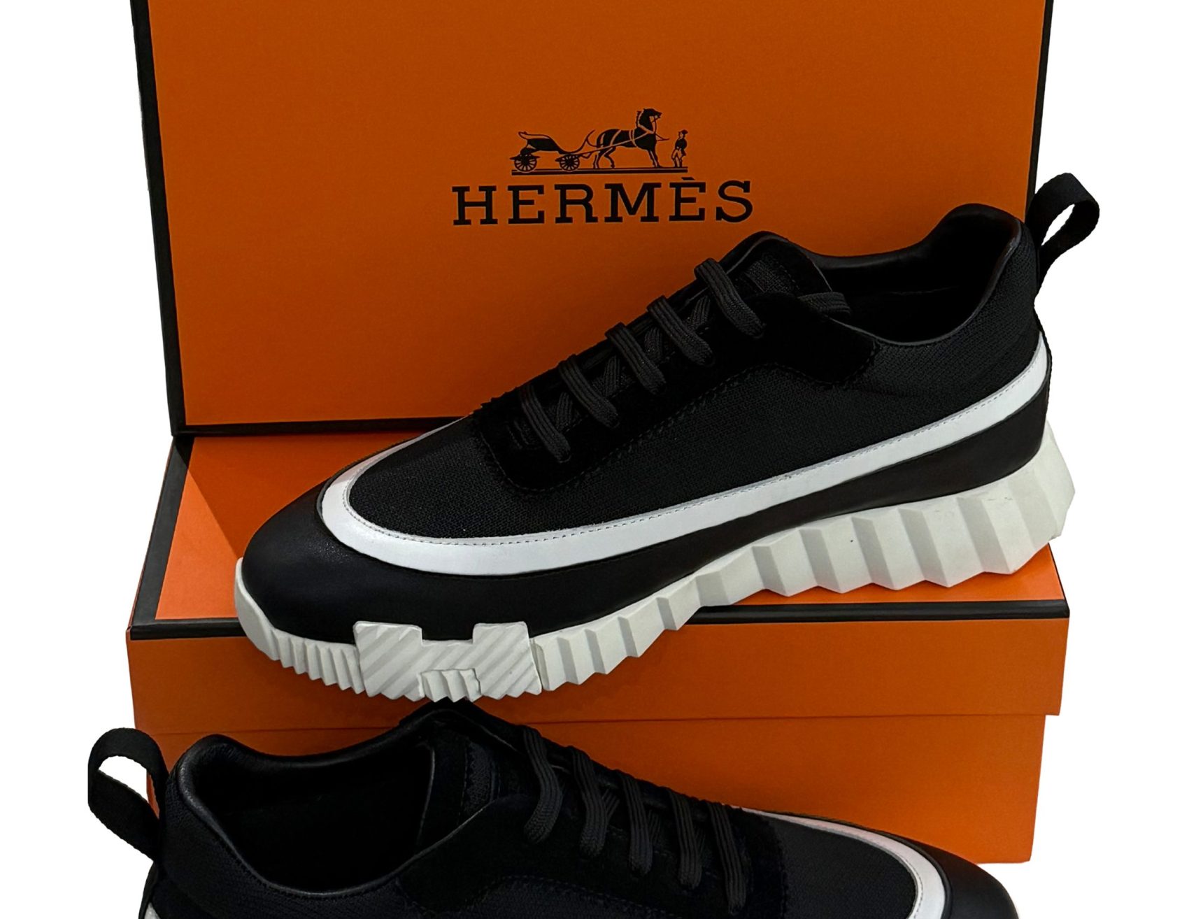 Hermes – Black & White Chunky Sole Low-Top – Sneakers
