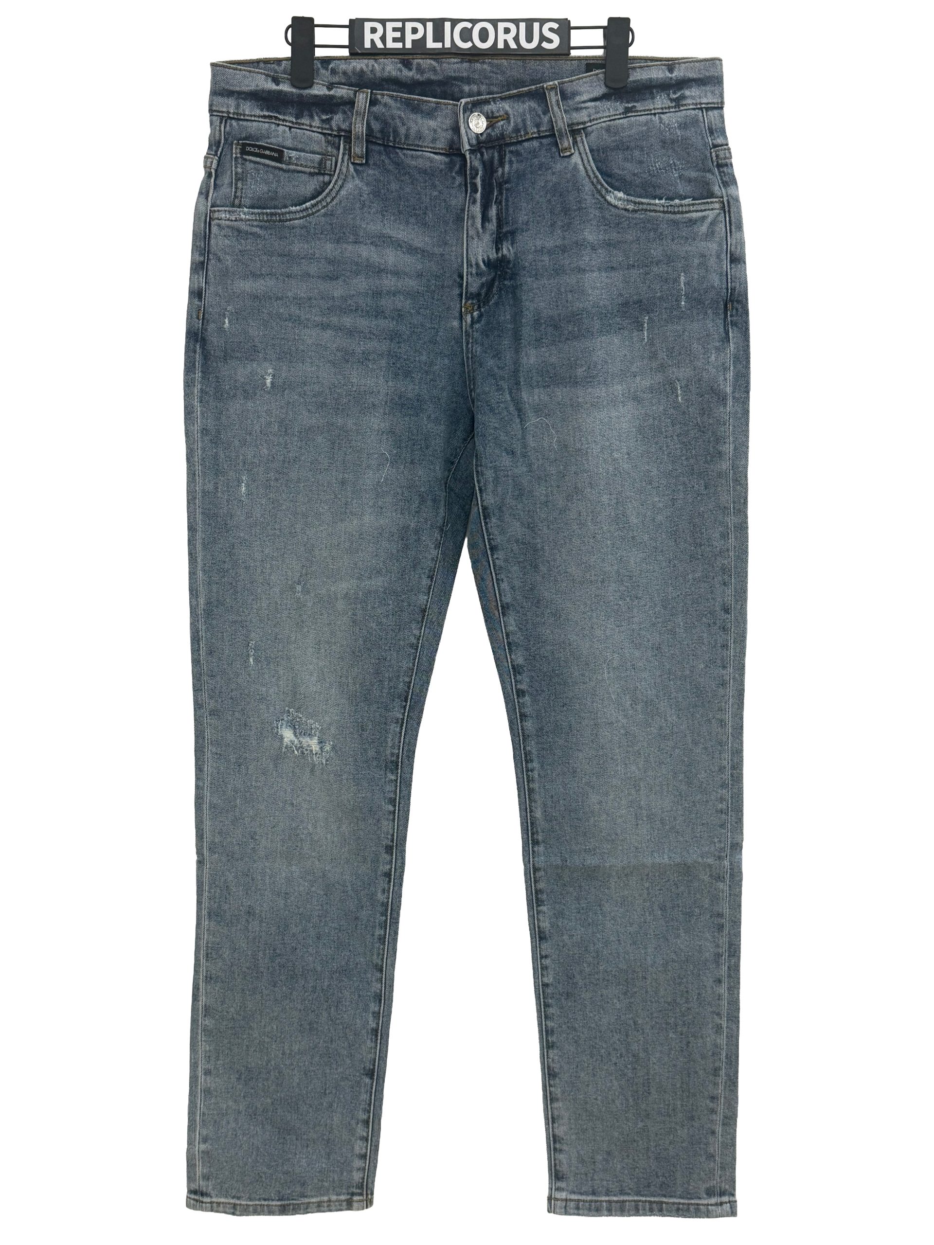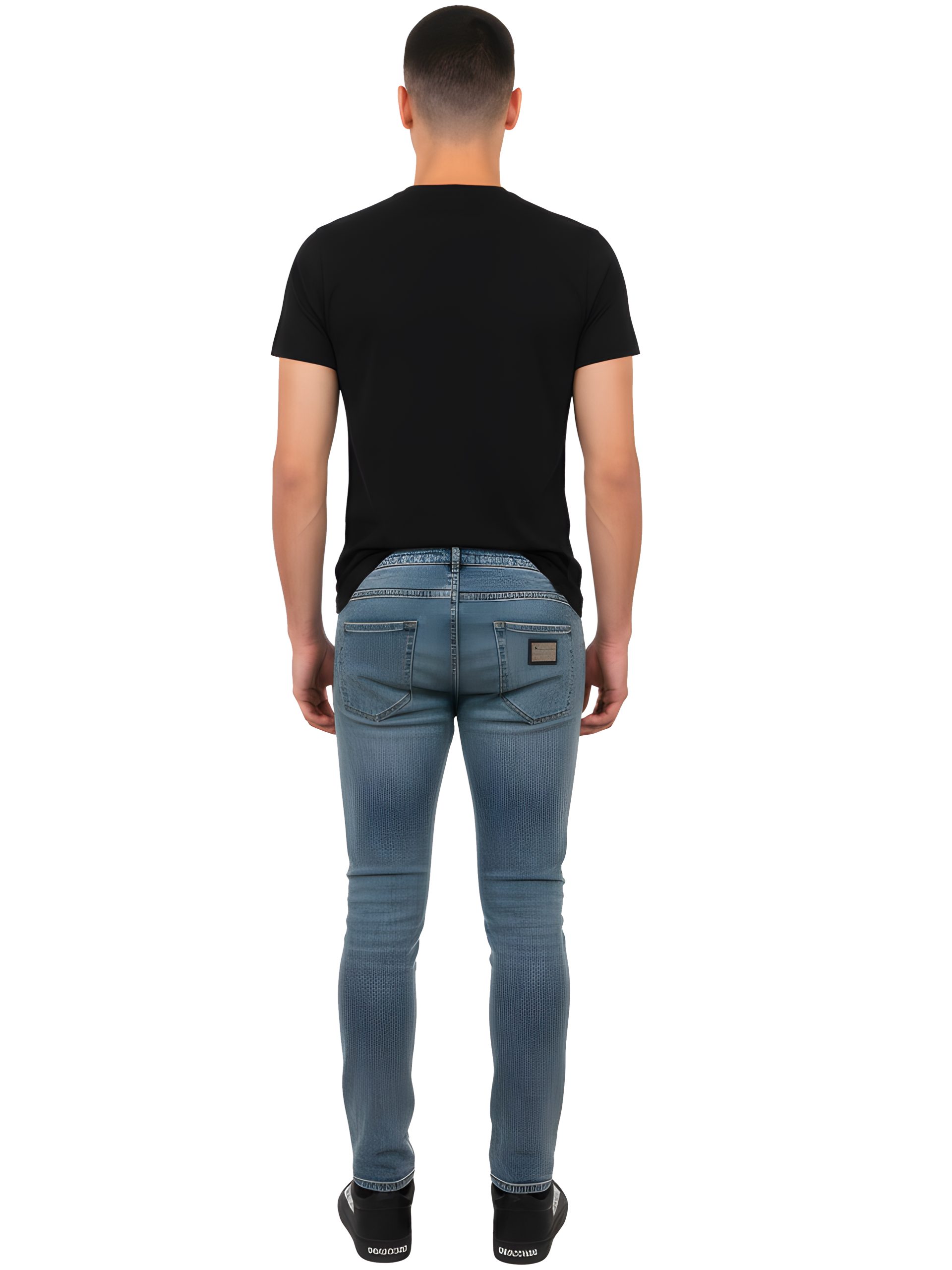 Clean and modern, these Dolce & Gabbana light blue skinny jeans feature a soft vintage wash with light distressing for a relaxed yet polished look. The balanced fading, slim contour, and rear metal logo plaque create a refined everyday denim essential with understated designer character. They feature: