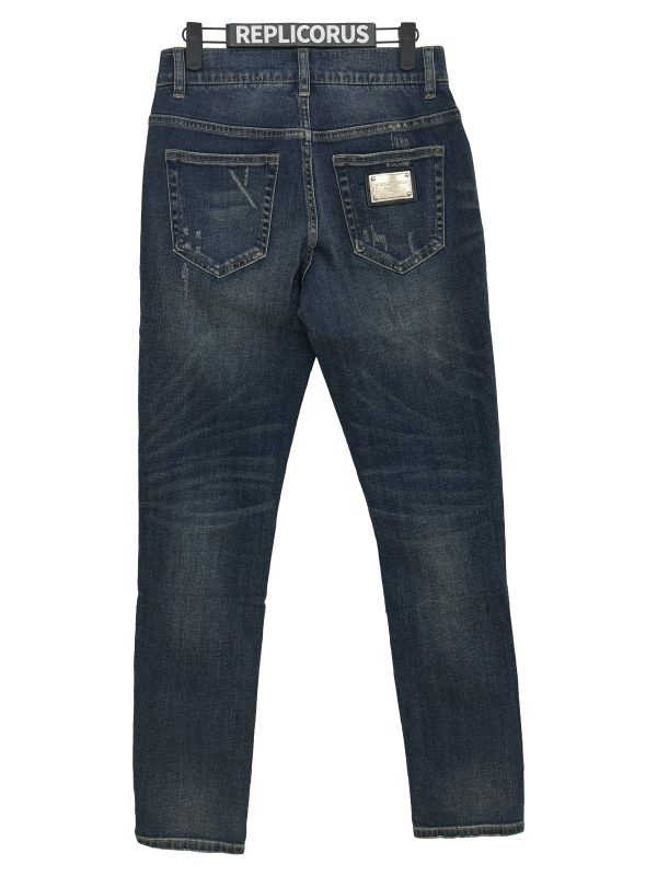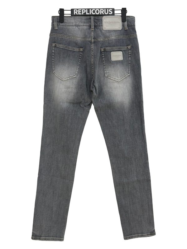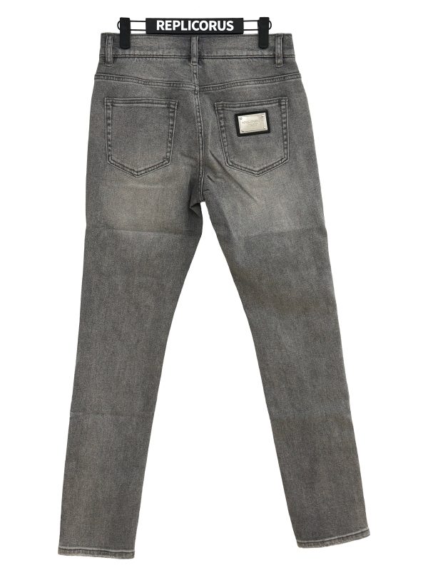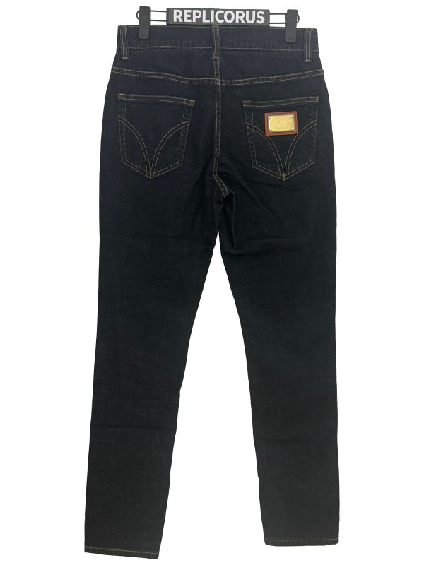 - Dolce & Gabbana metal logo plaque positioned on the right back pocket for a clean signature accent