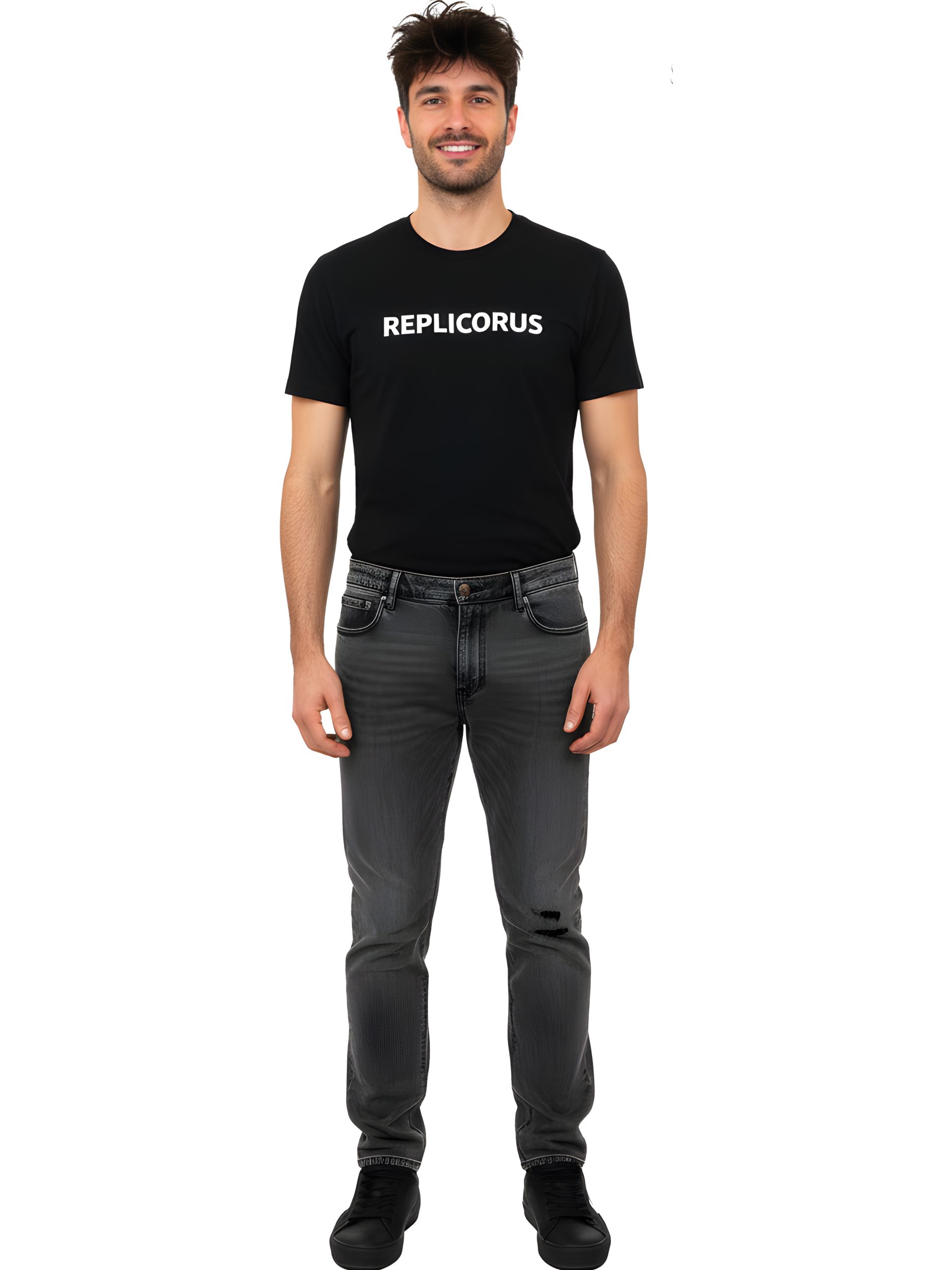 • Grey acid-wash denim with heavy tonal fading for a strong vintage effect