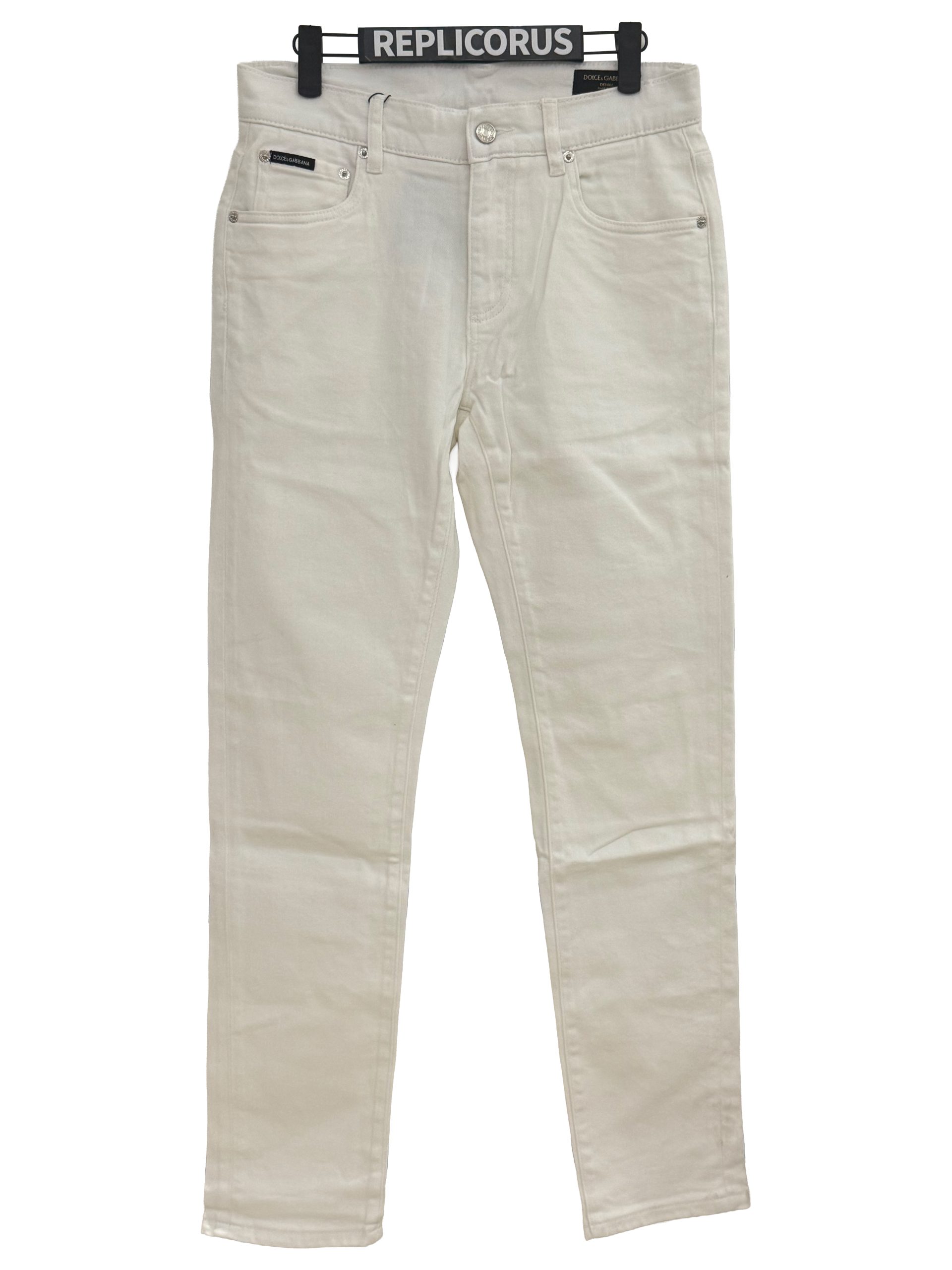 Clean and sophisticated, these Dolce & Gabbana white skinny jeans deliver a crisp, contemporary look crafted with signature Italian refinement. The bright white finish, sculpted skinny silhouette, and polished metal branding make this pair a timeless essential that elevates any wardrobe. They feature: