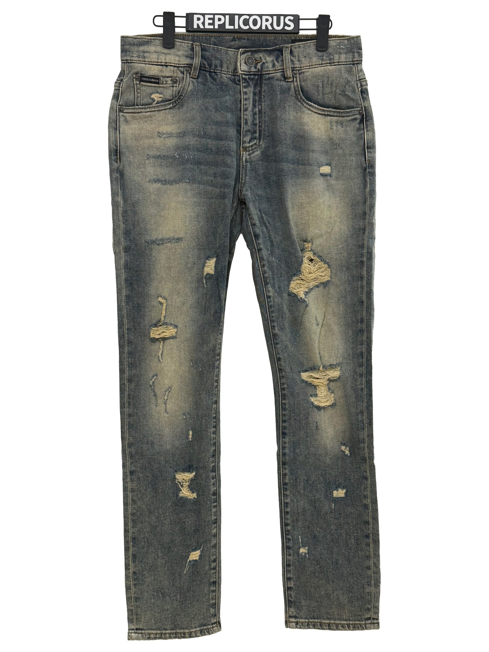 Rugged and stylish, these Dolce & Gabbana beige vintage-wash distressed skinny jeans deliver a bold, worn-in aesthetic crafted with signature Italian expertise. The faded beige–grey undertone, heavy distressing, and sculpted skinny silhouette make this pair a statement piece with authentic character. They feature: