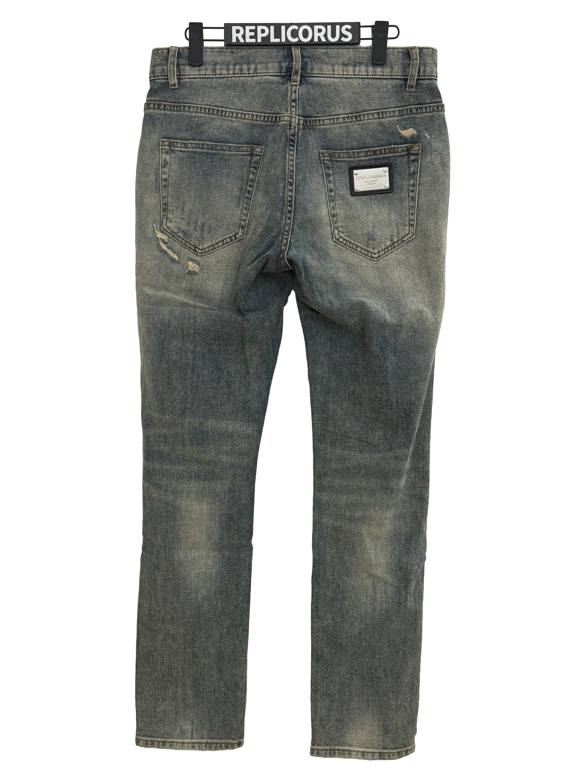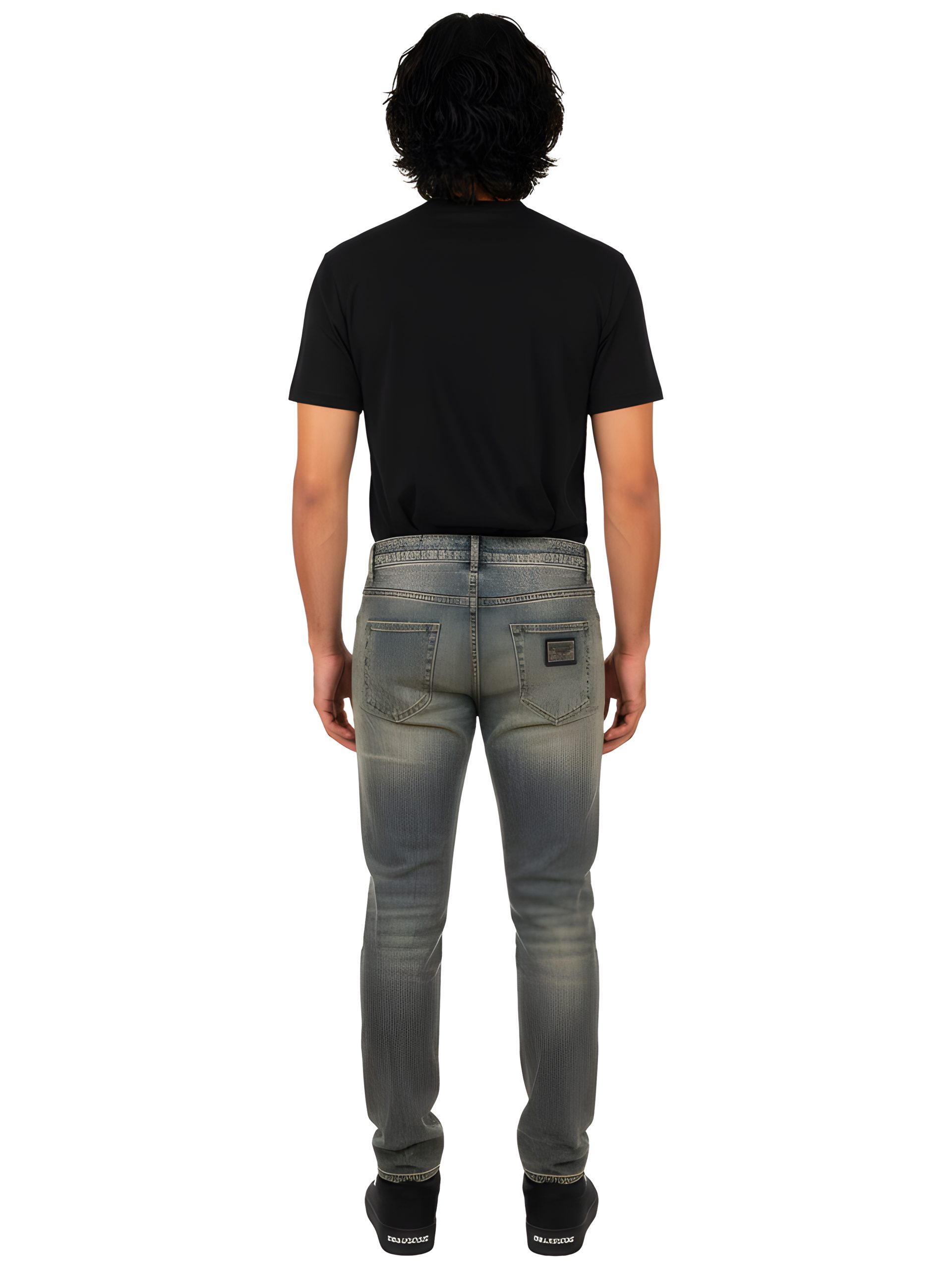 - Branded silver metal Dolce & Gabbana logo plaque positioned on the right back pocket for signature refinement