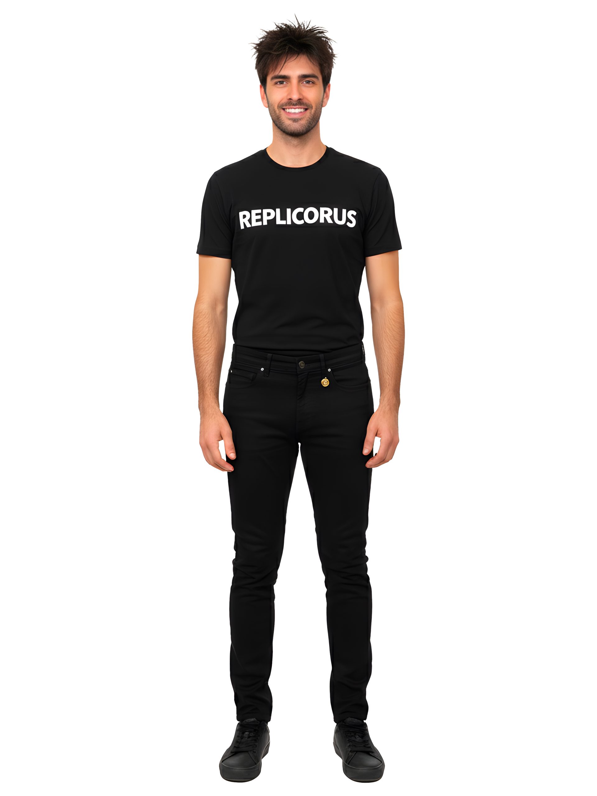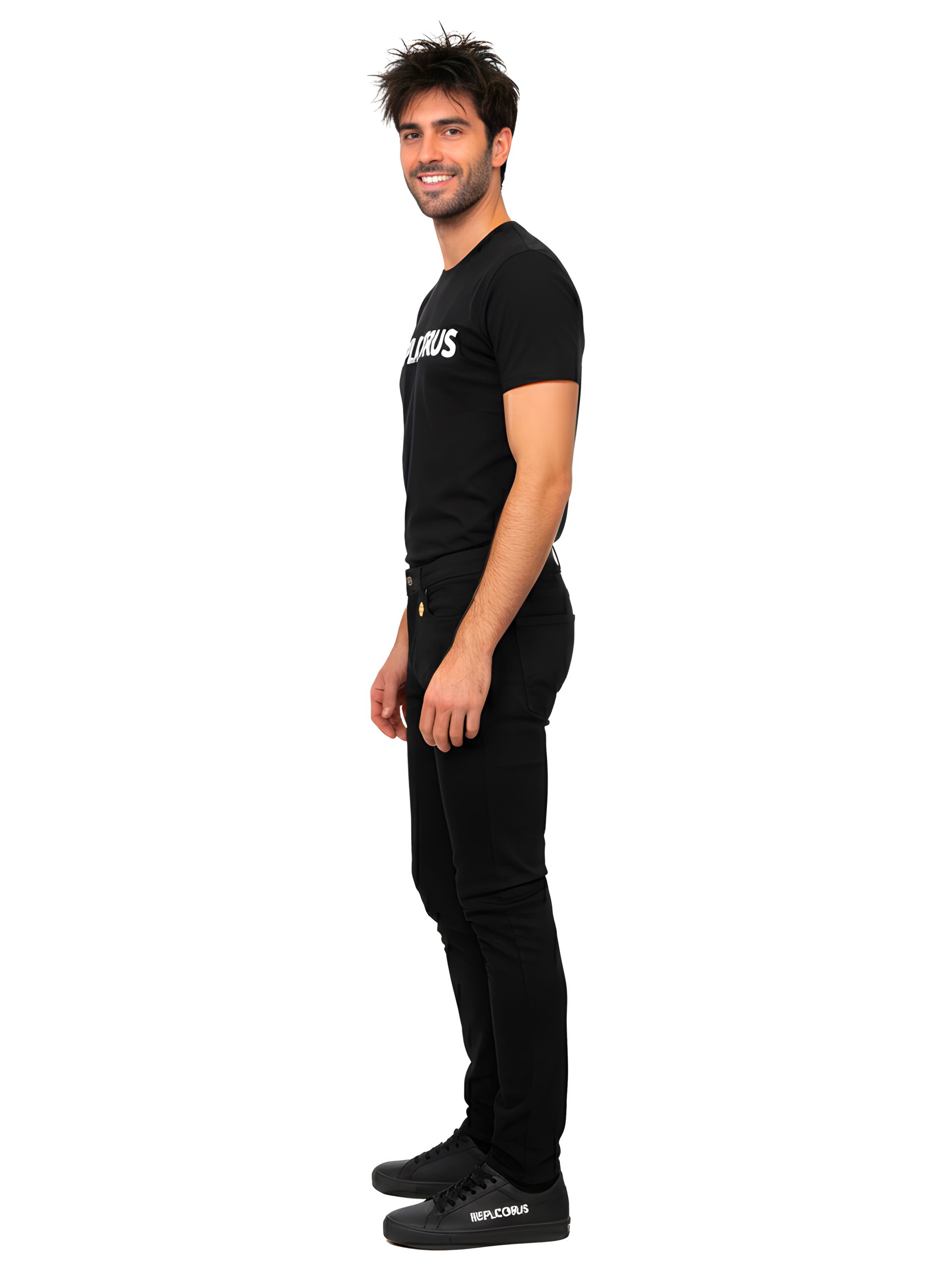 Elevate your everyday style with these Dolce & Gabbana black skinny jeans, a modern essential enhanced by refined gold detailing. Featuring a distinctive gold medallion charm on the front belt loop and a gold metal logo plaque on the right back pocket, this piece blends minimalism with unmistakable luxury. Crafted from soft stretch denim, it delivers a sharp silhouette with exceptional comfort. They feature: