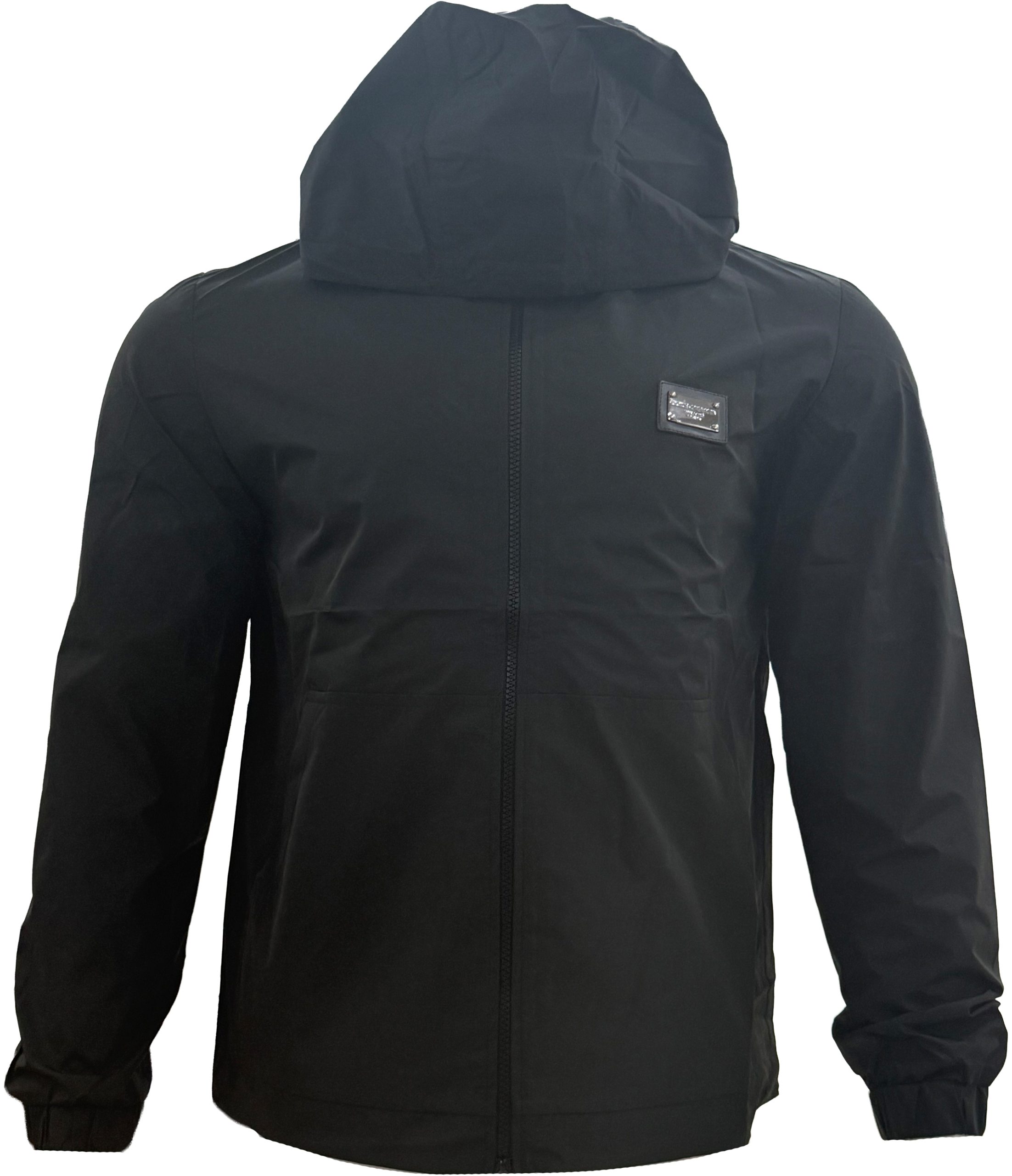 This Dolce & Gabbana black hooded jacket delivers a clean, modern look with a lightweight technical feel. The minimalist front, full-zip closure, and signature logo plaque on the chest make it an easy everyday piece for city wear, travel, or layered streetwear looks.