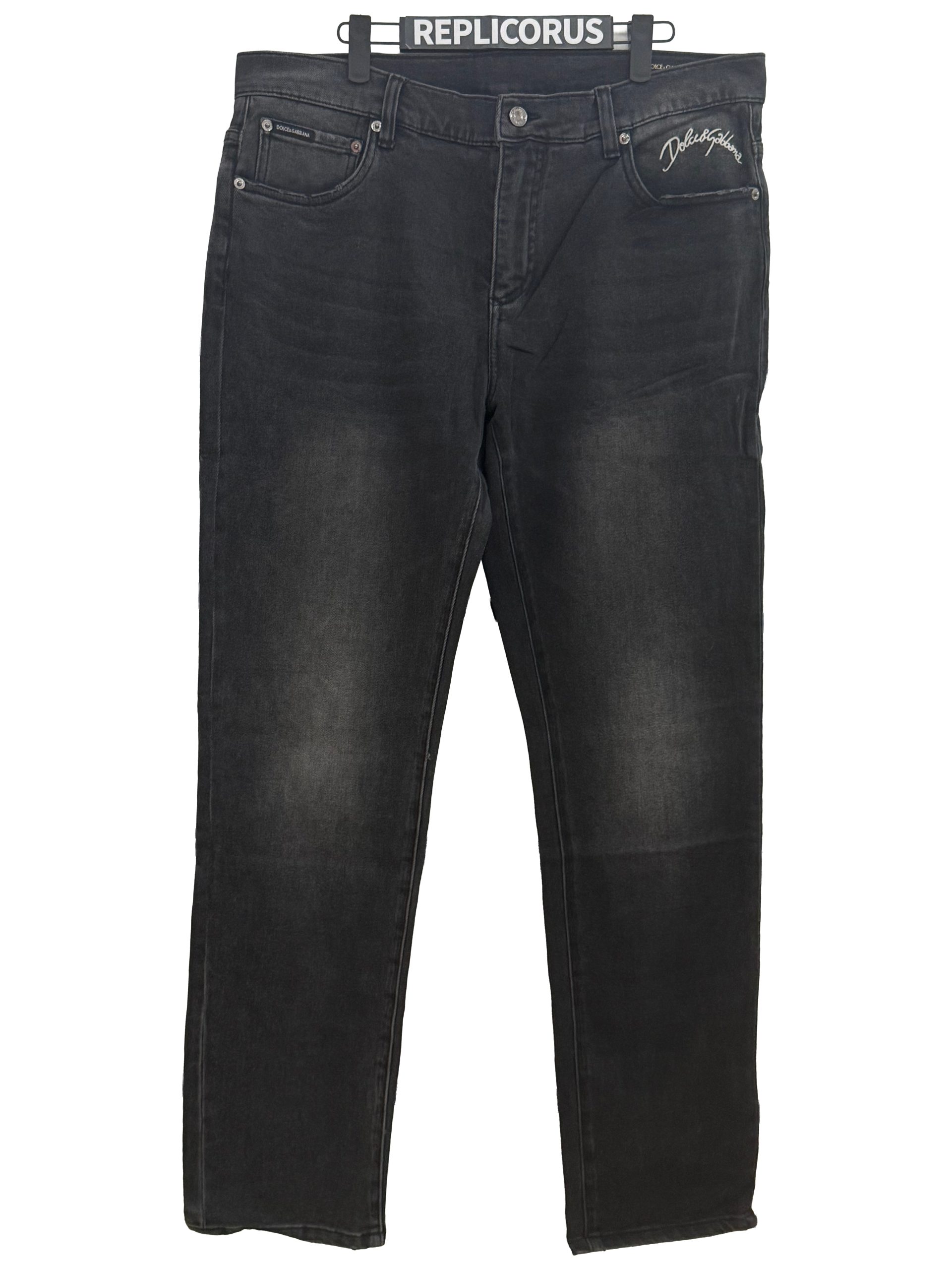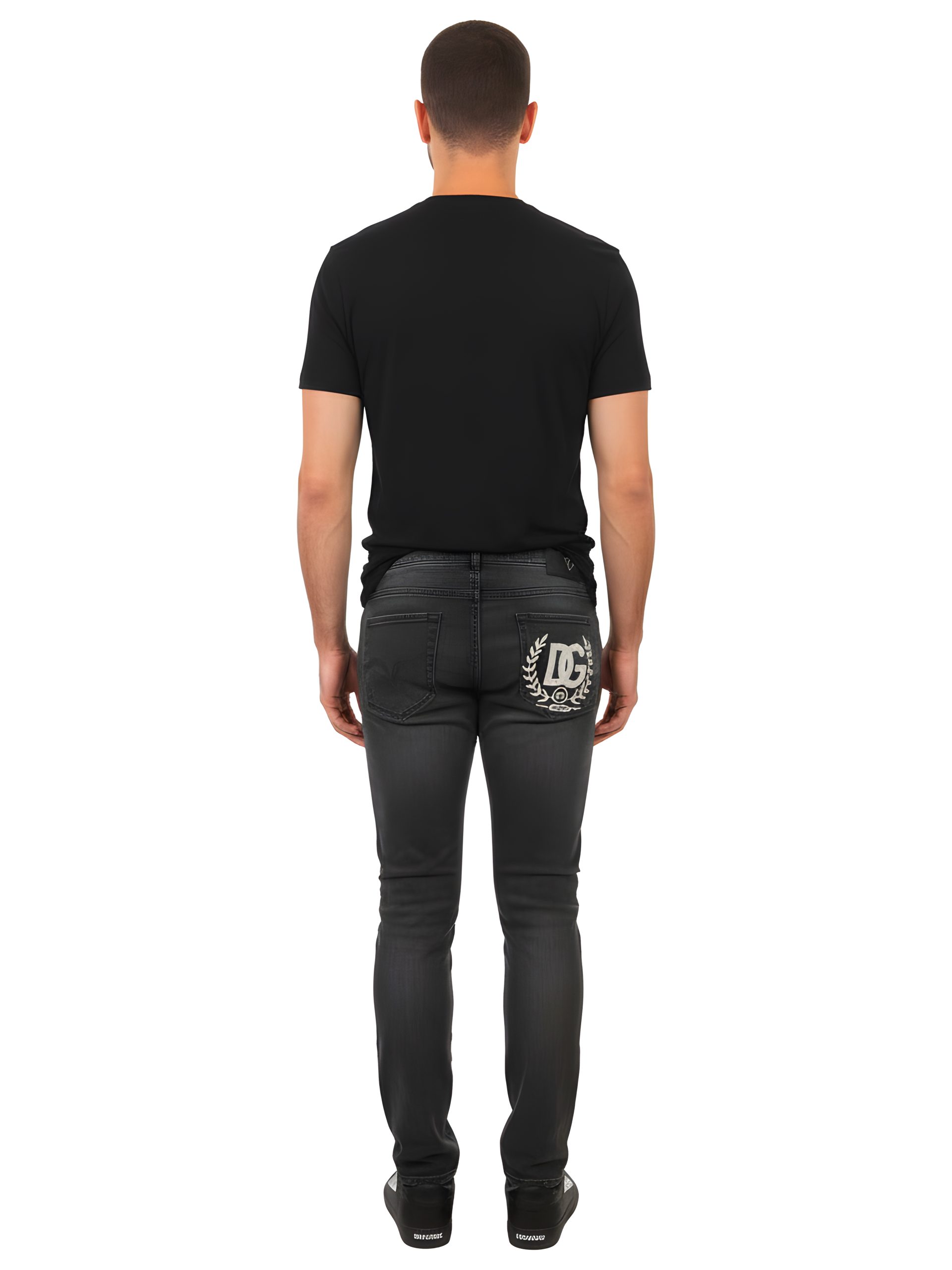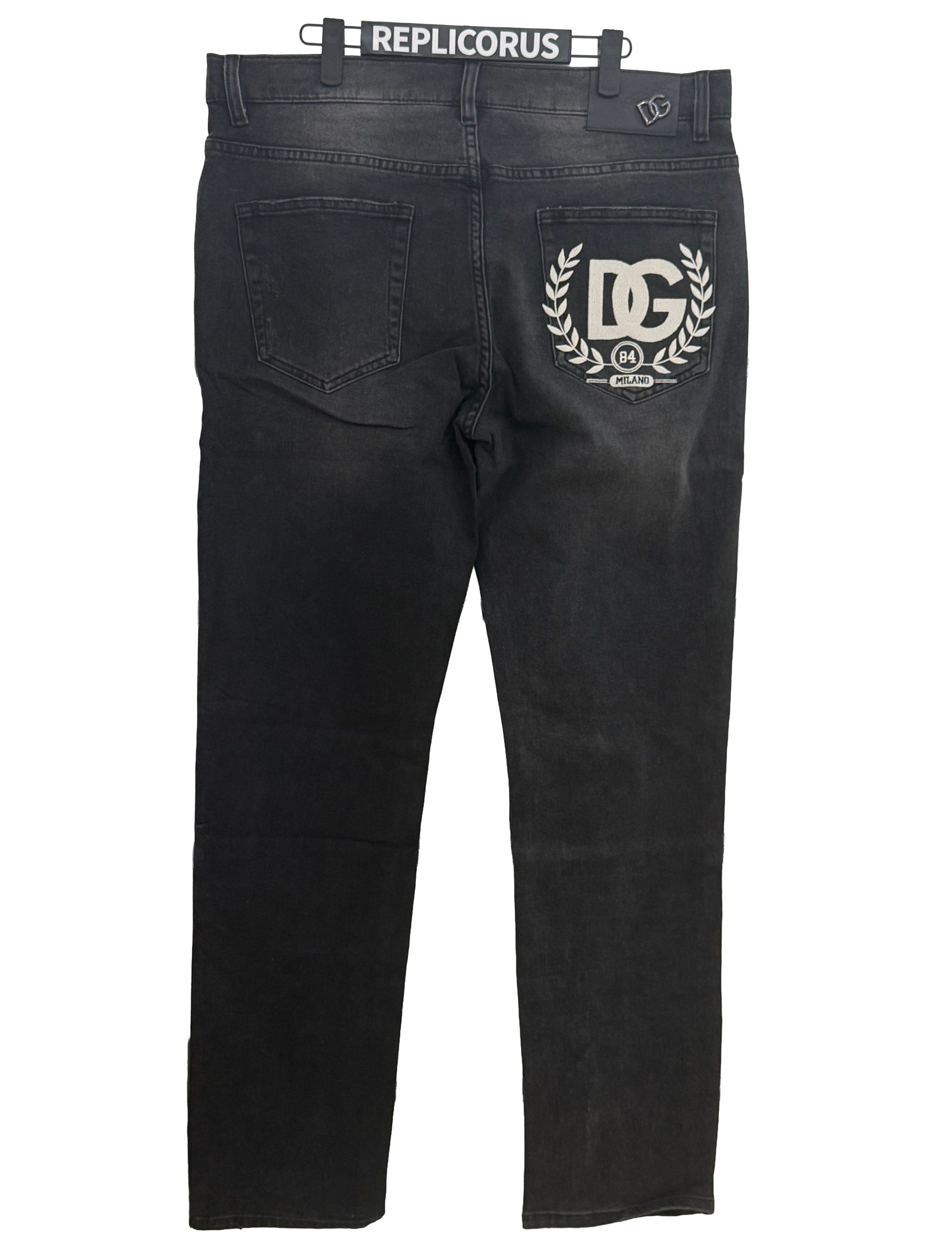 - Large DG crest patch on the right back pocket for a bold designer statement