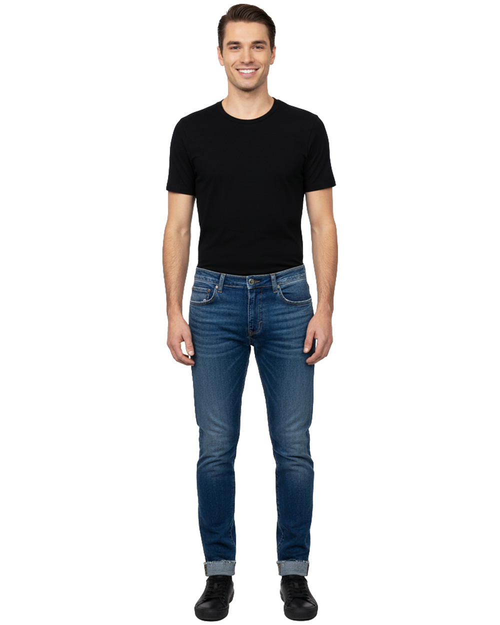 - Mid-blue denim tone with natural fading for an authentic worn effect