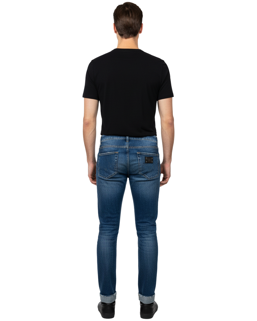 - Branded metal Dolce & Gabbana logo plaque placed on the right back pocket for signature appeal
