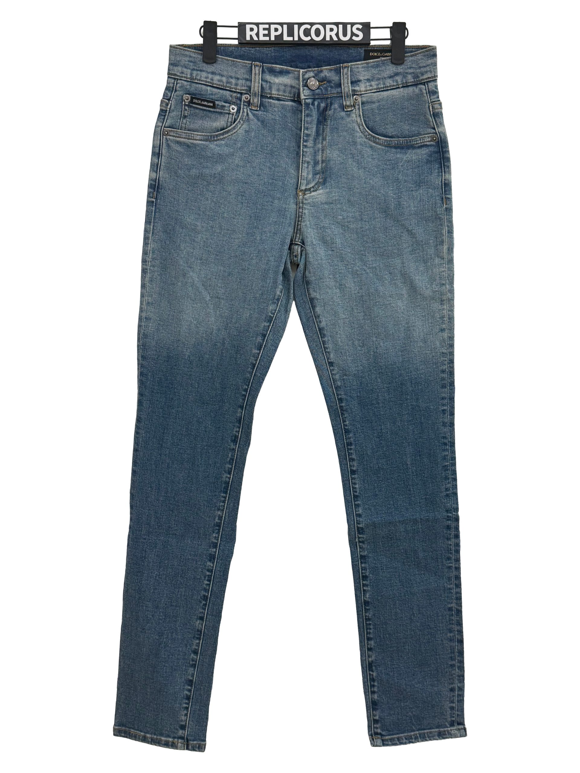 Clean, modern, and unmistakably Italian — these Dolce & Gabbana light-wash skinny jeans deliver everyday versatility with refined luxury detailing. Cut from soft stretch denim, they offer a streamlined silhouette enhanced by subtle fading and the signature metallic branding on the back. They feature:
