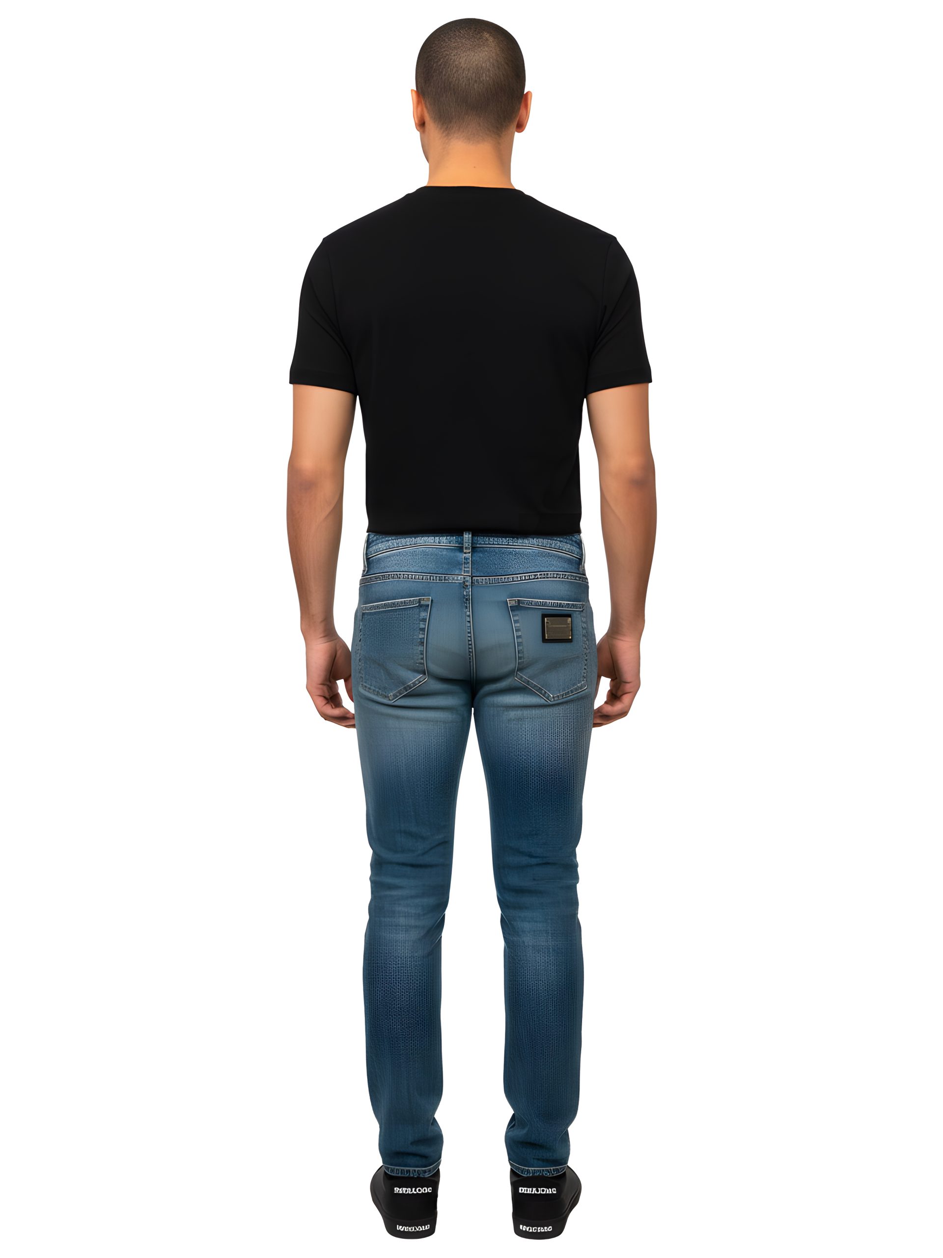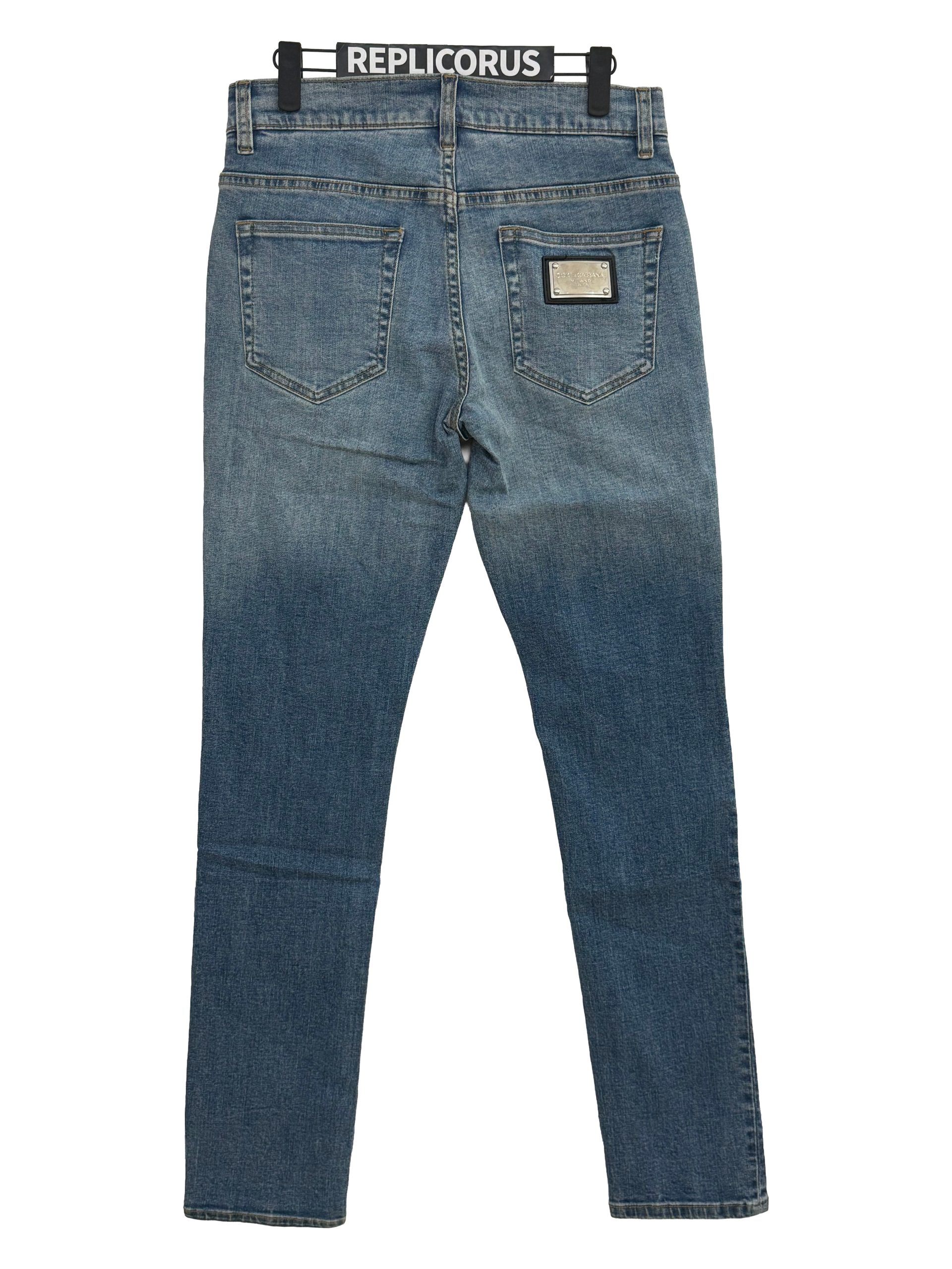 - Branded silver metal Dolce & Gabbana logo plaque on the right back pocket for signature appeal