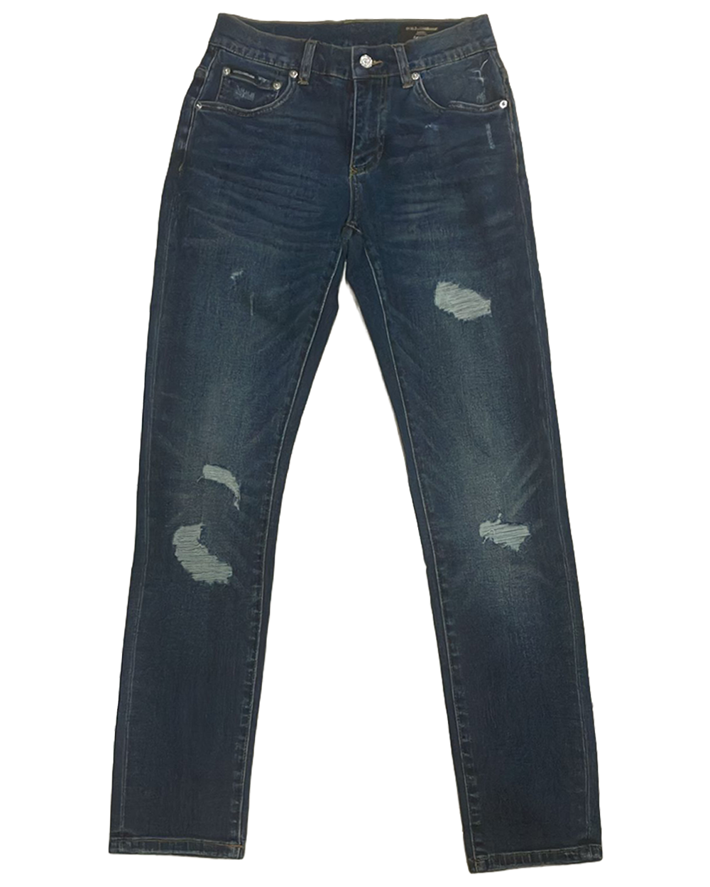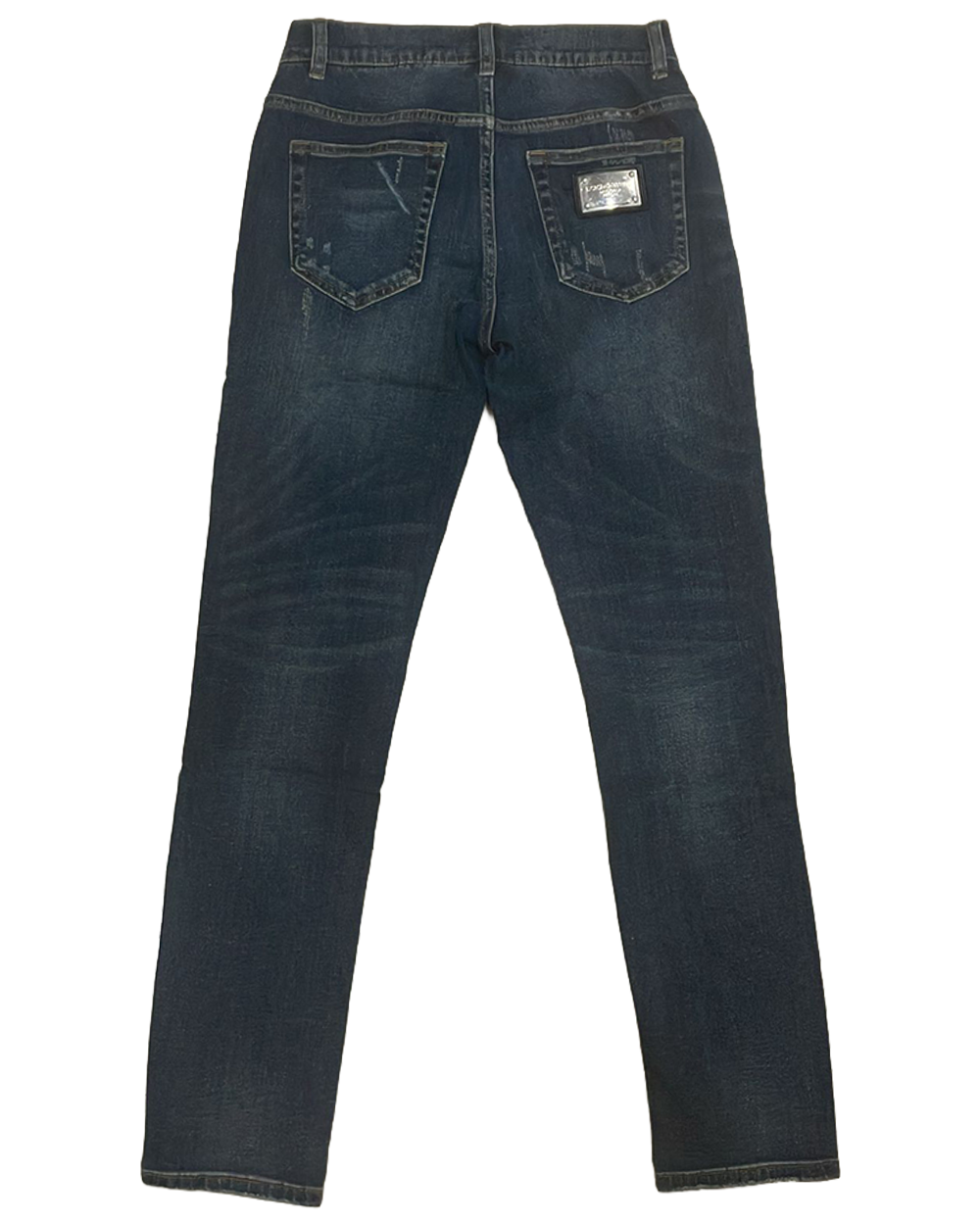 Dolce & Gabbana – Dark Blue Skinny Distressed Jeans with Metal Logo Plaque