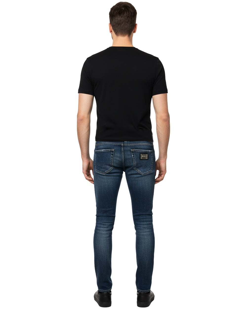 - Branded silver metal Dolce & Gabbana logo plaque on the right back pocket for signature appeal