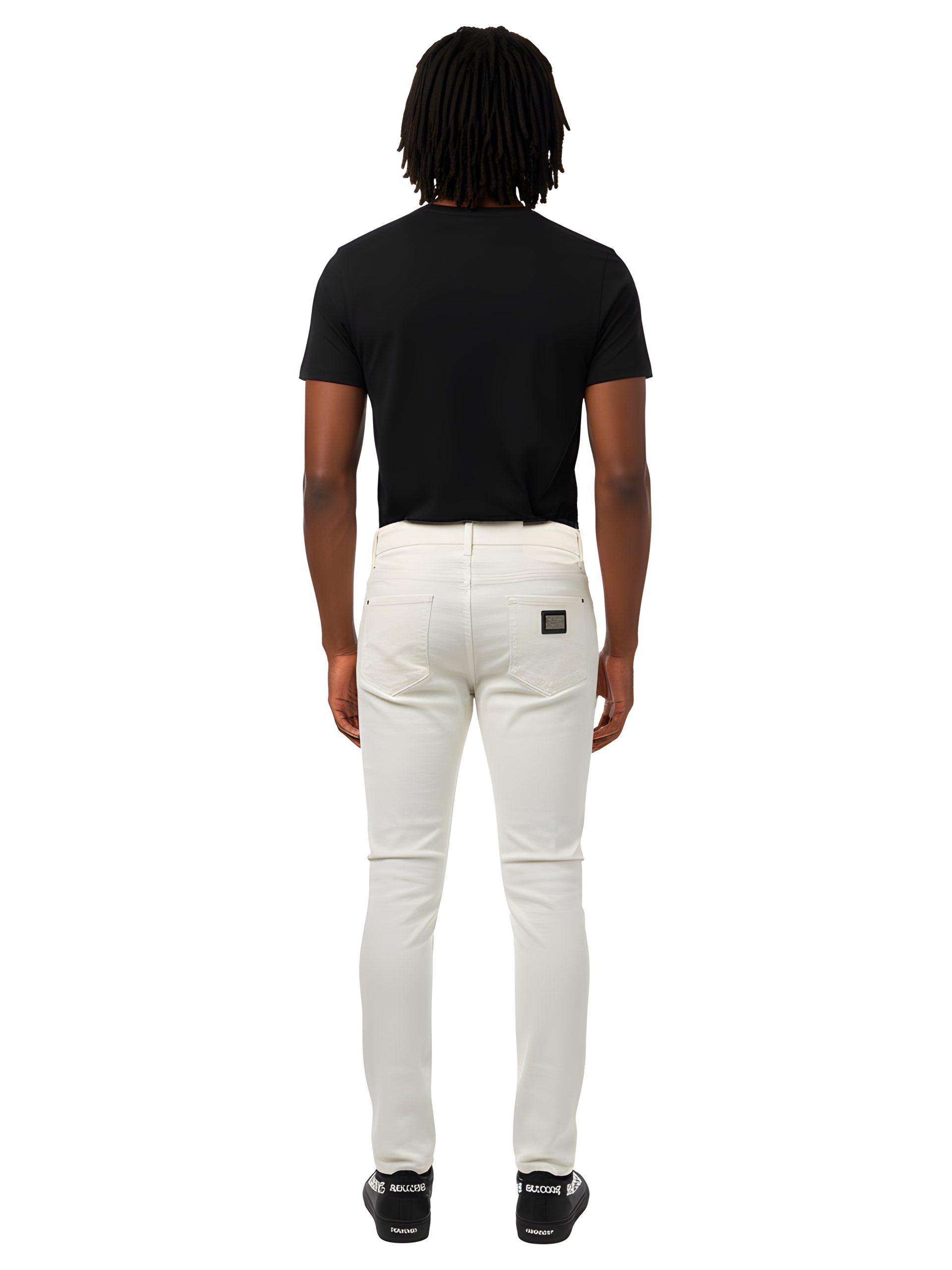 Refined and minimalist, these Dolce & Gabbana white skinny jeans deliver a crisp, sophisticated look with unmistakable Italian craftsmanship. The clean white finish, sculpted silhouette, and signature metal branding make this pair a versatile essential that elevates any modern wardrobe. They feature:
