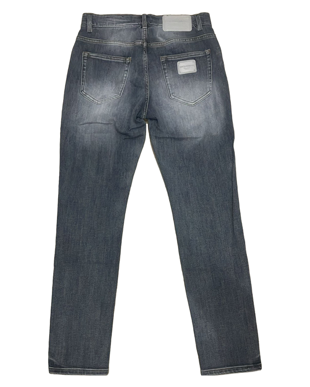 Dolce & Gabbana – Grey Wash Jeans with Plastic Logo Patch and Back Waist Tag