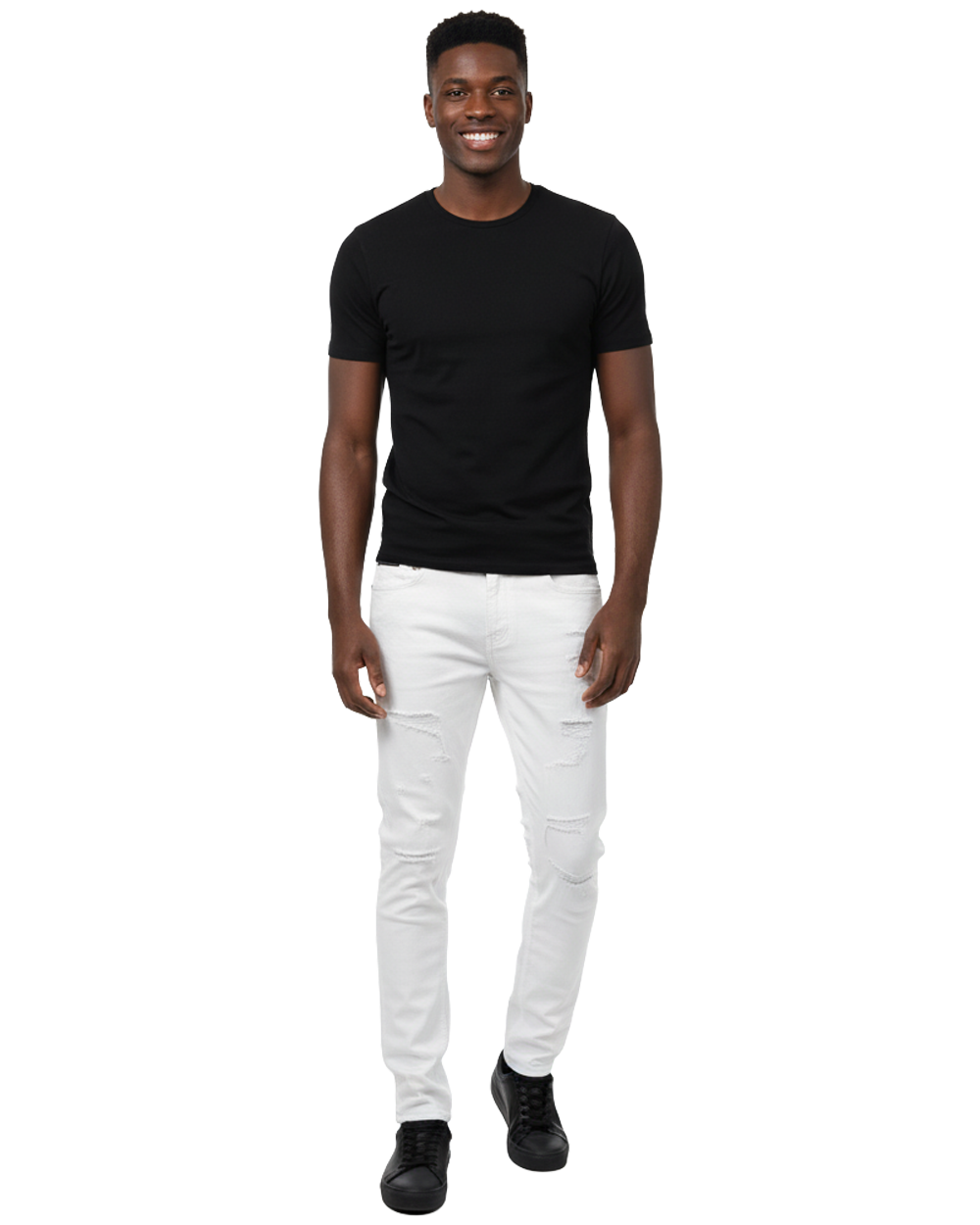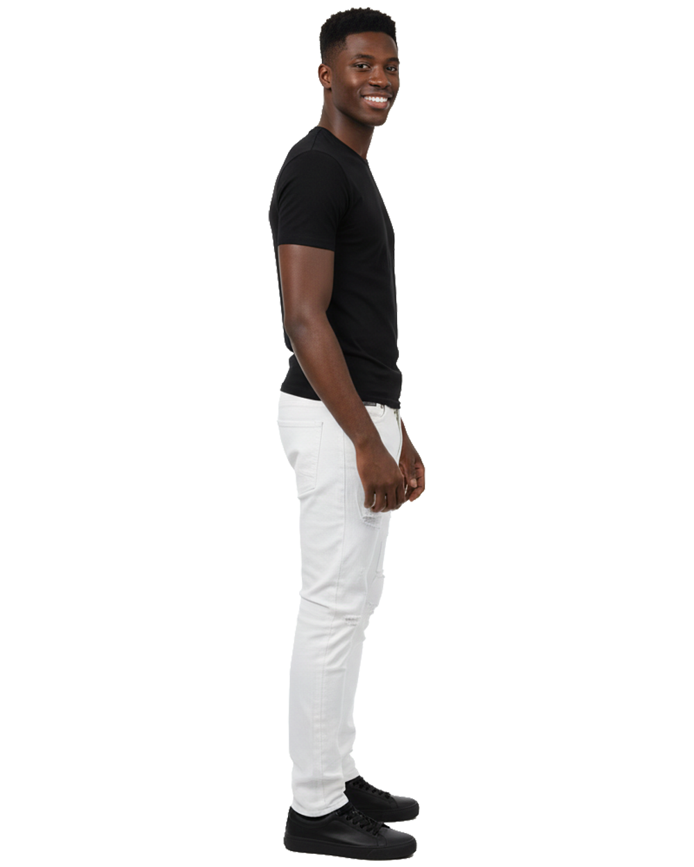 - Skinny-fit silhouette designed for a sharp, tapered profile