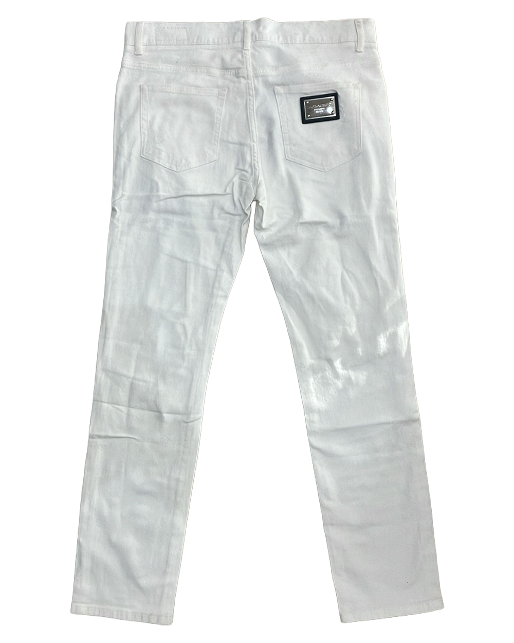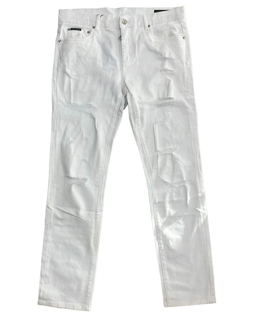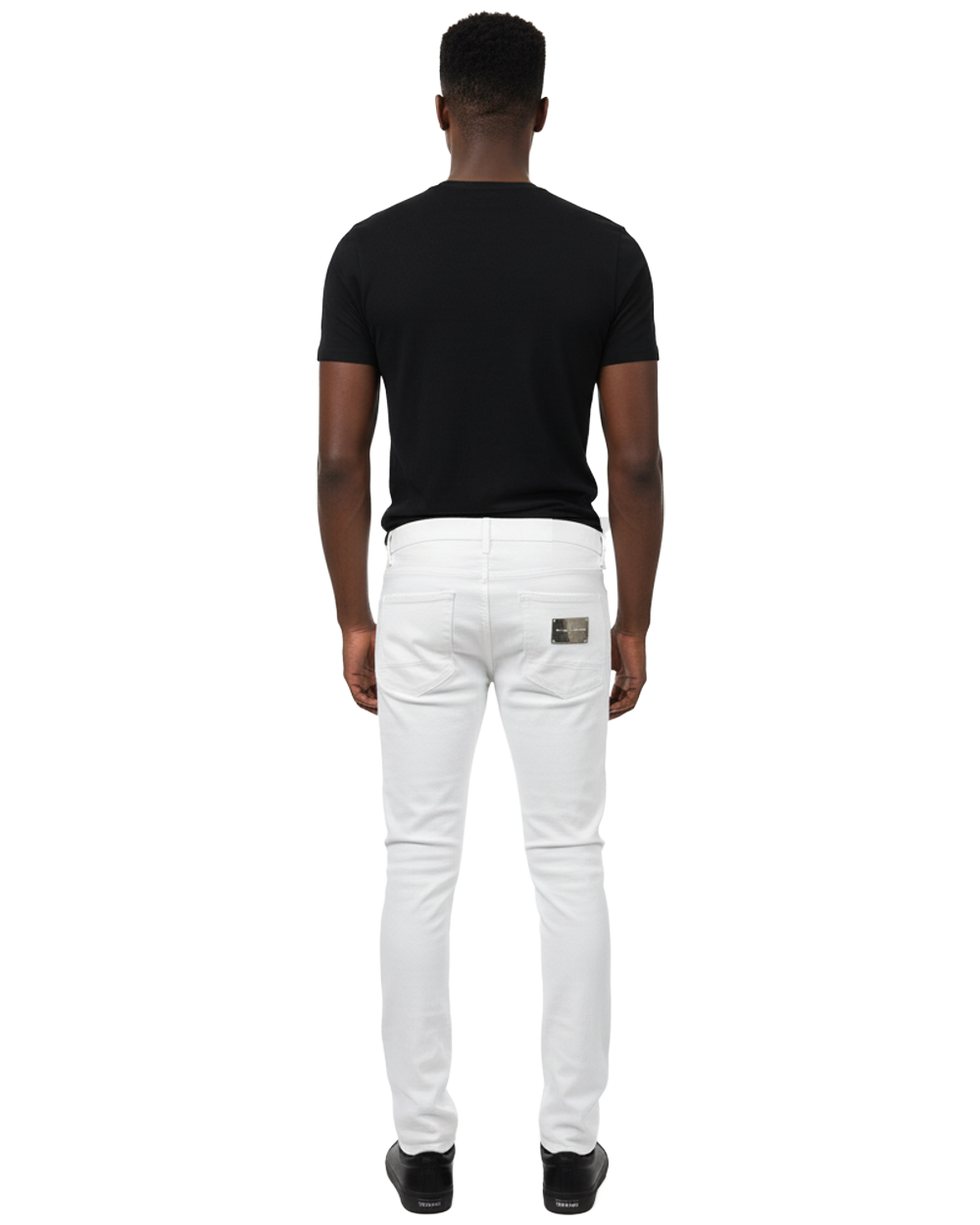 Dolce & Gabbana – White Skinny Distressed Jeans with Silver Logo Plaque