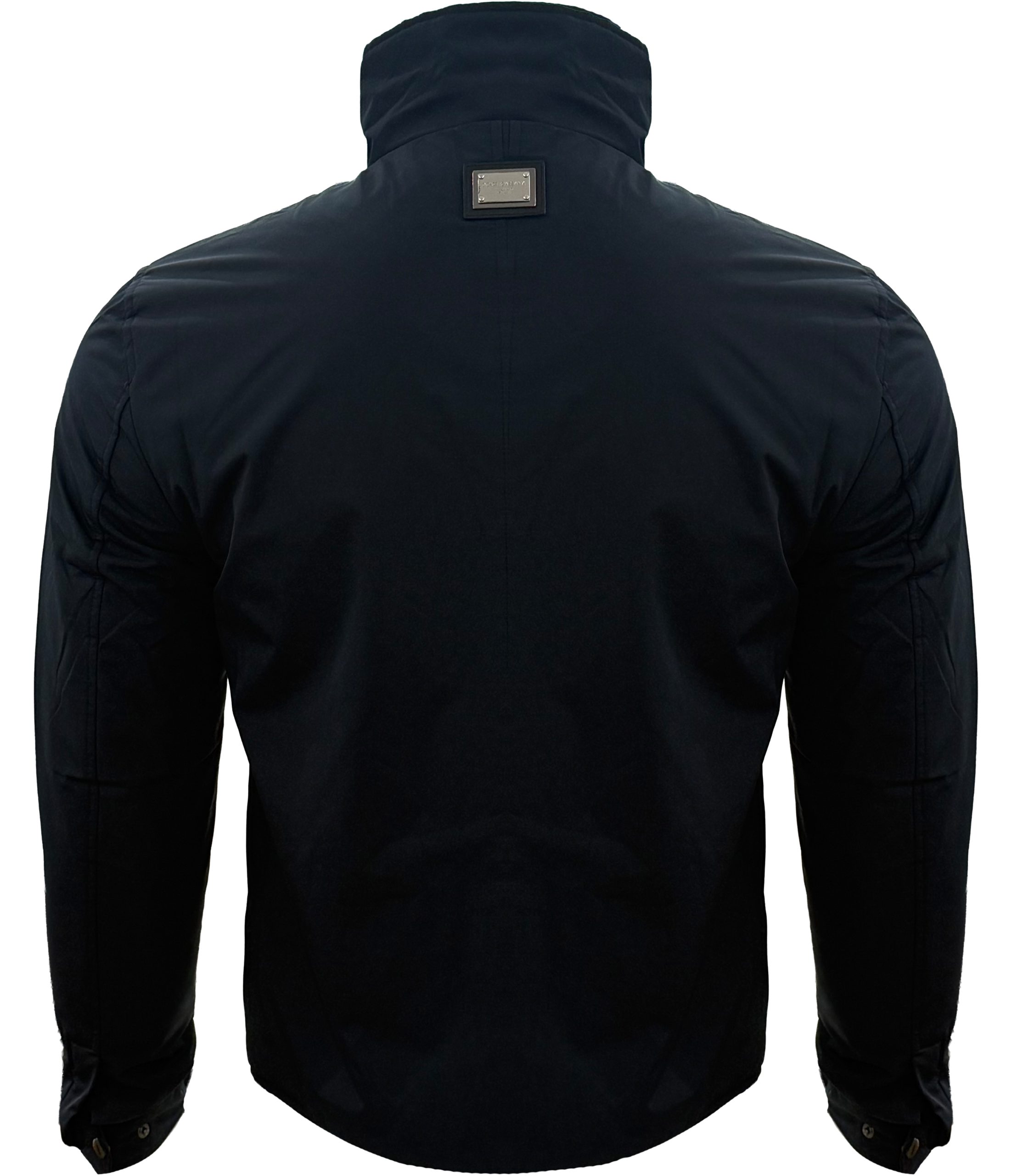 This Dolce & Gabbana black jacket combines a clean, modern silhouette with a refined multi-pocket design. The smooth black fabric, structured shoulders, and high stand collar give it a sharp, city-ready look, while the signature logo plaque at the back adds a discreet luxury touch. Ideal for smart casual outfits and transitional weather.