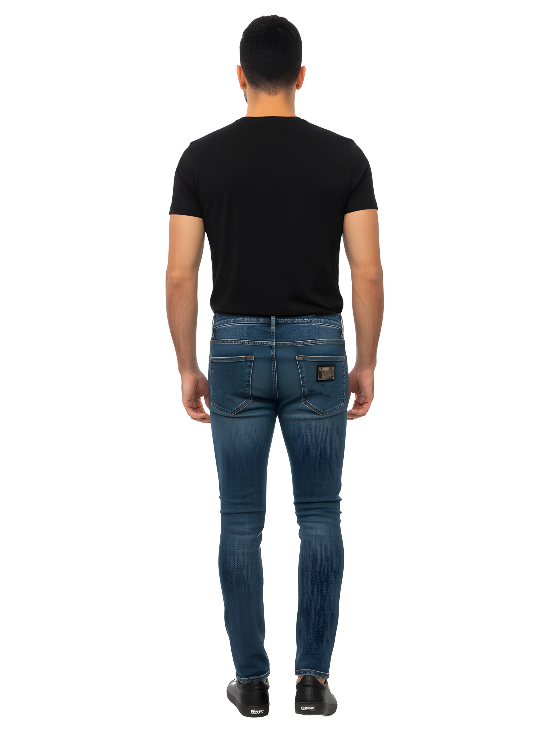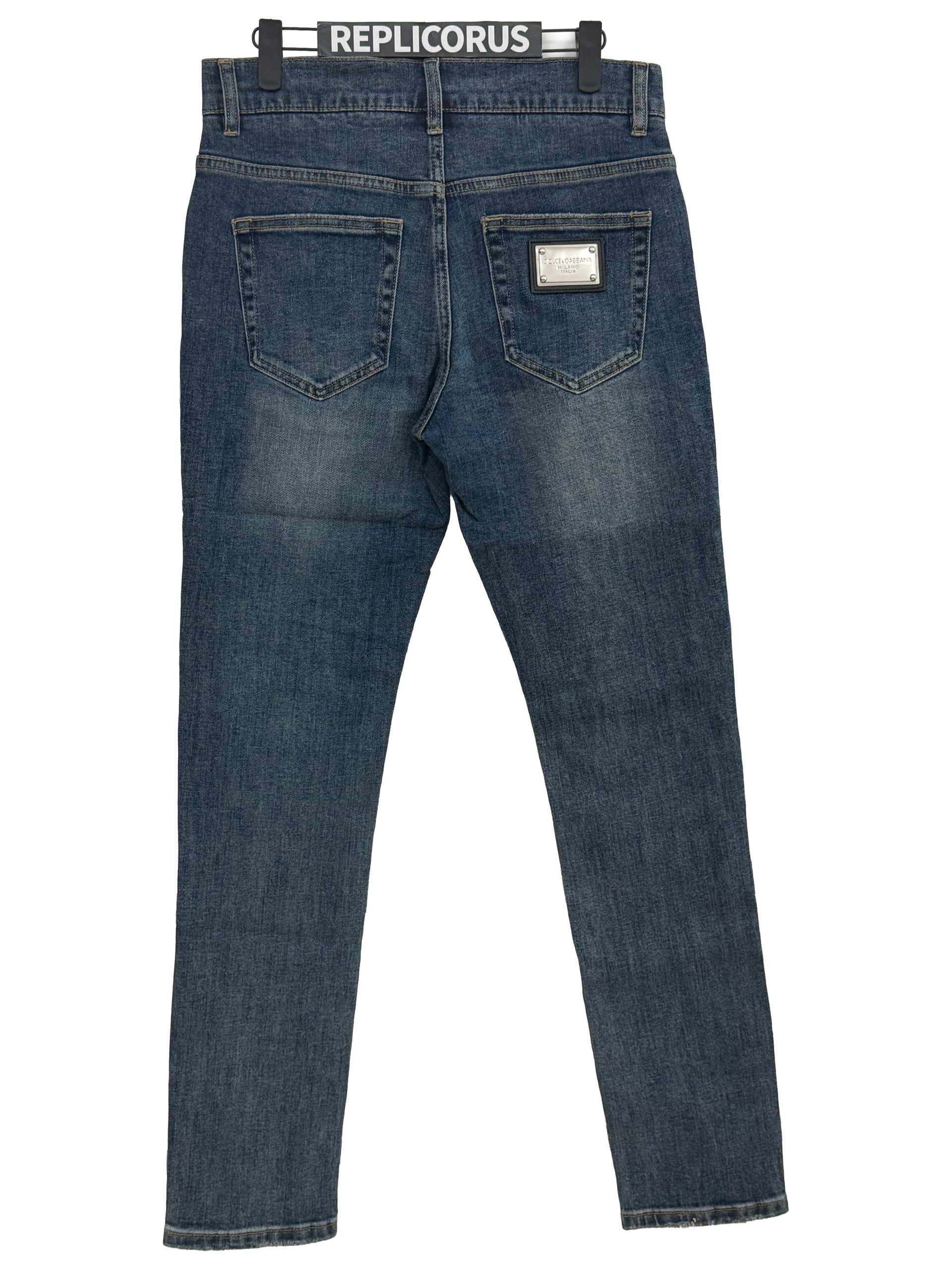 Clean and versatile, these Dolce & Gabbana blue vintage-wash skinny jeans balance casual comfort with signature Italian refinement. Featuring natural fading, a sculpted skinny silhouette, and a polished metal logo plaque, this pair elevates everyday denim with understated luxury. They feature: