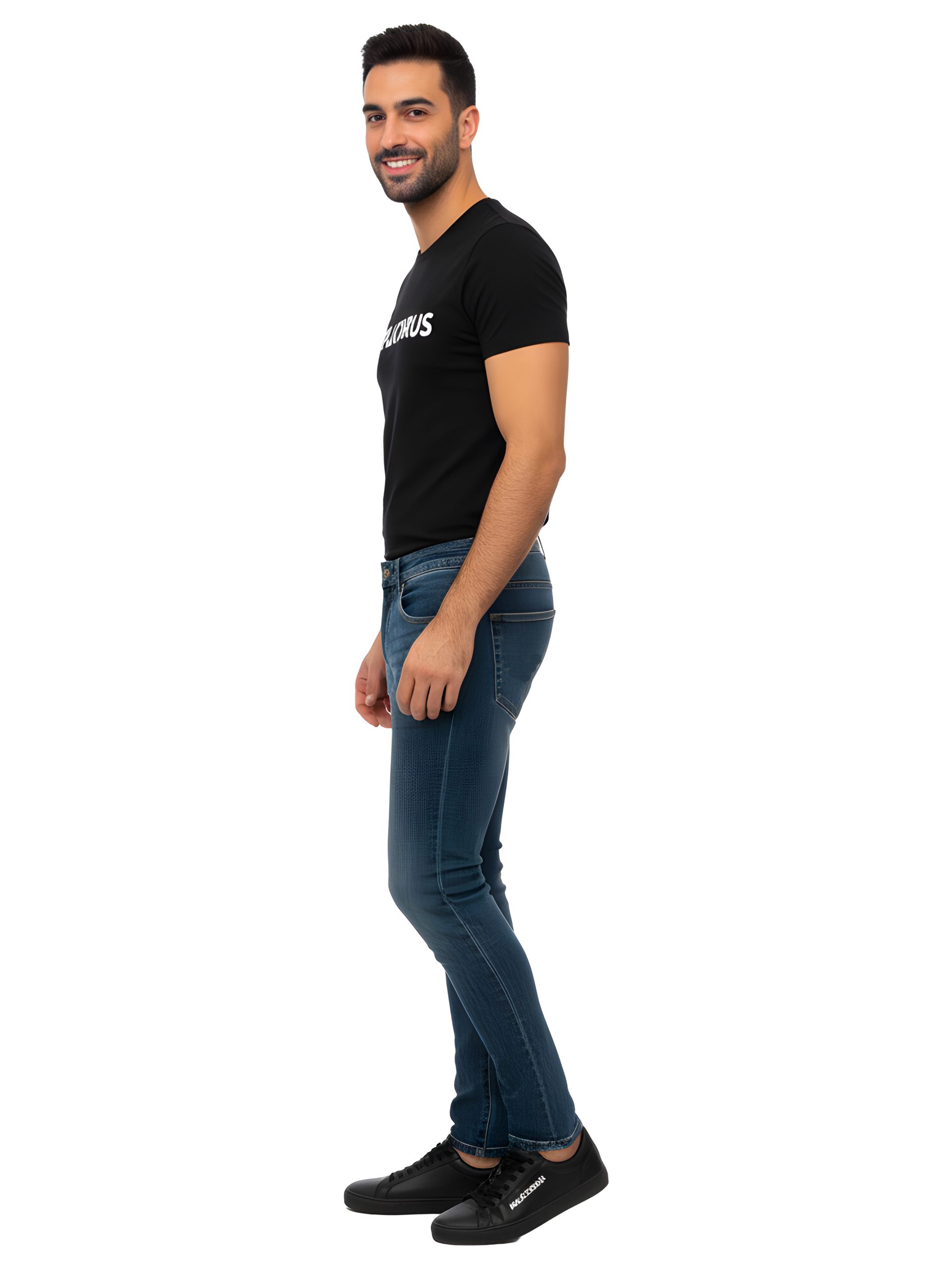 - Skinny-fit silhouette offering a tapered, body-hugging profile