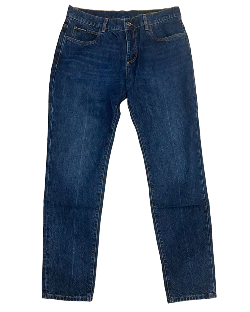 Sophisticated and distinctive, these Dolce & Gabbana dark blue regular-fit jeans combine classic Italian denim with a refined touch of luxury. The standout detail — a full brown leather back pocket — adds depth, contrast, and texture to a timeless silhouette. They feature: