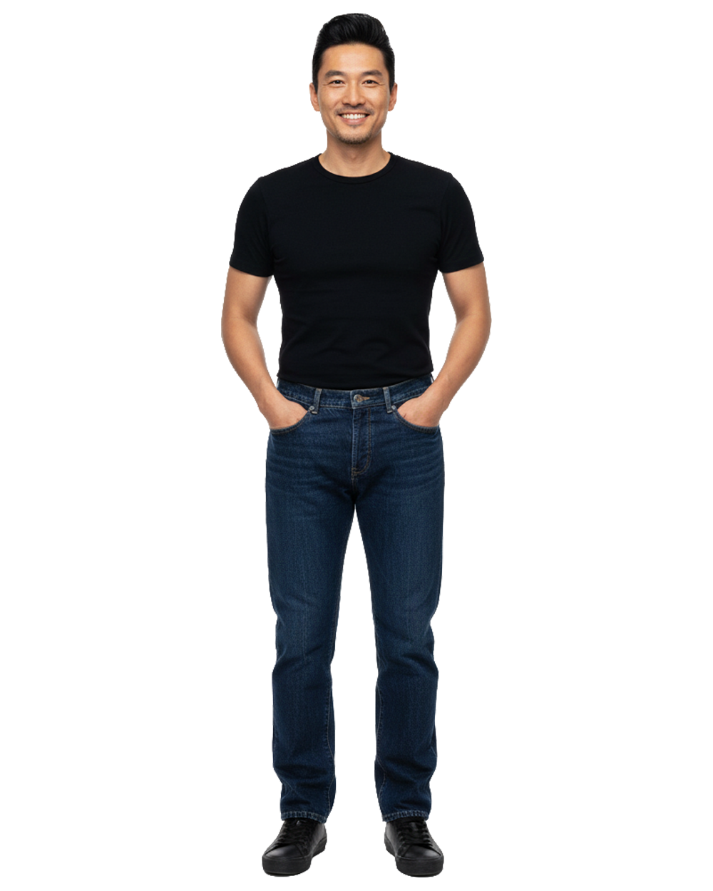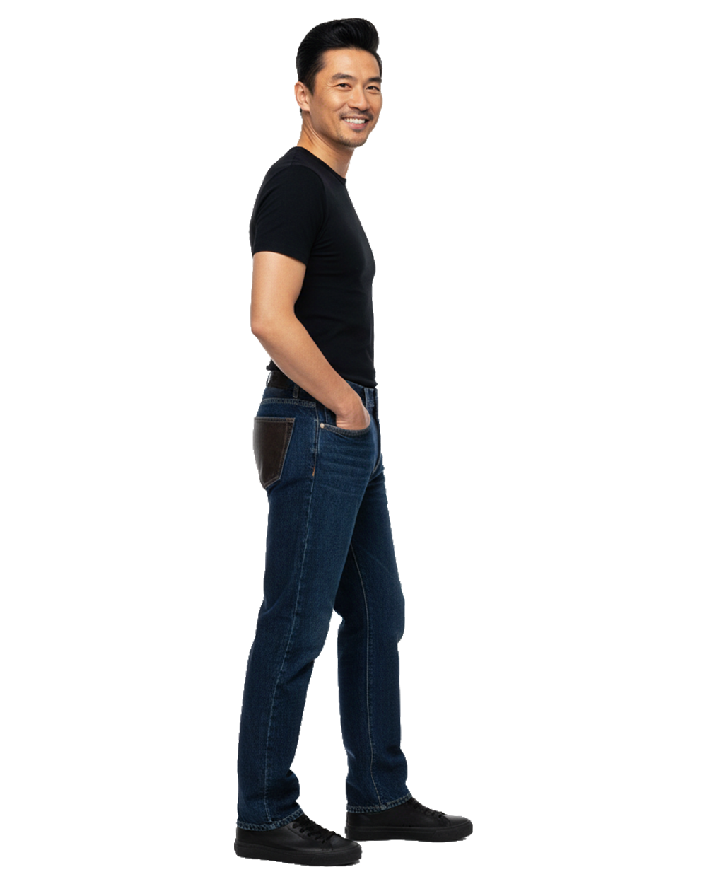 • Five-pocket construction with precise tonal stitching and reinforced seams