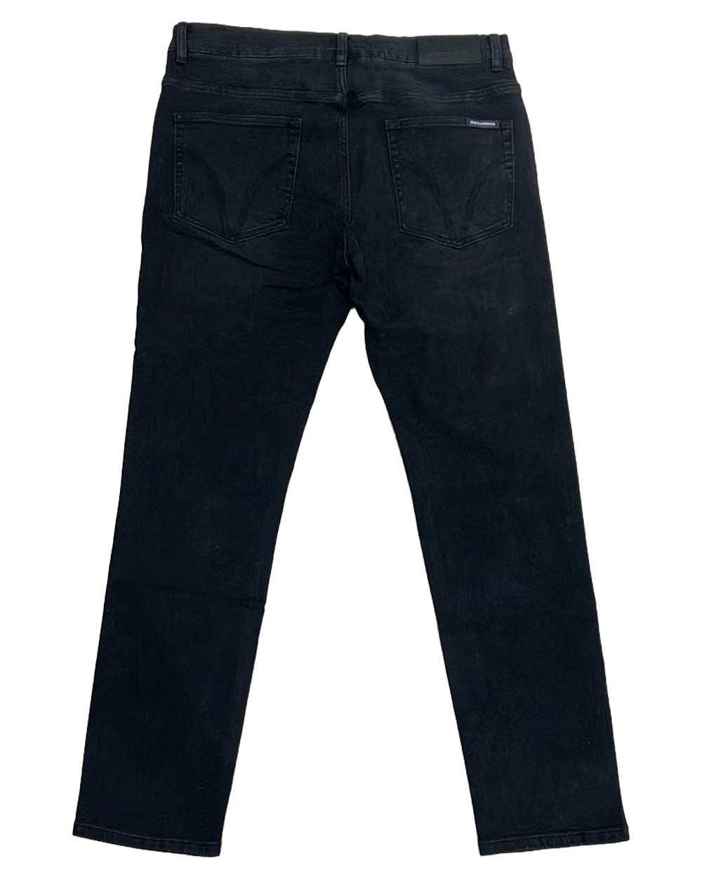Dolce & Gabbana – Black Skinny Jeans with Front Velcro Metal Plate and Logo Detail
