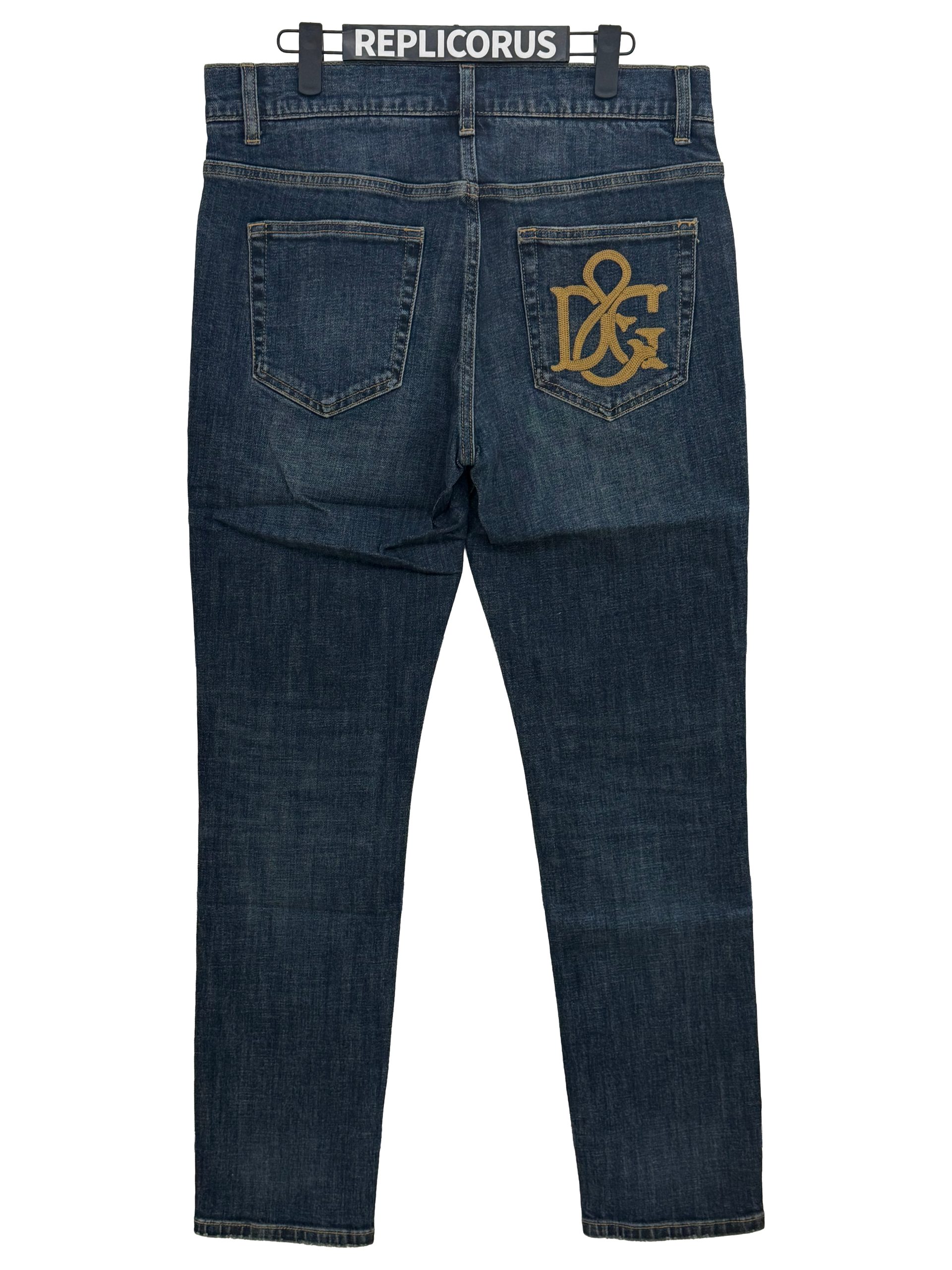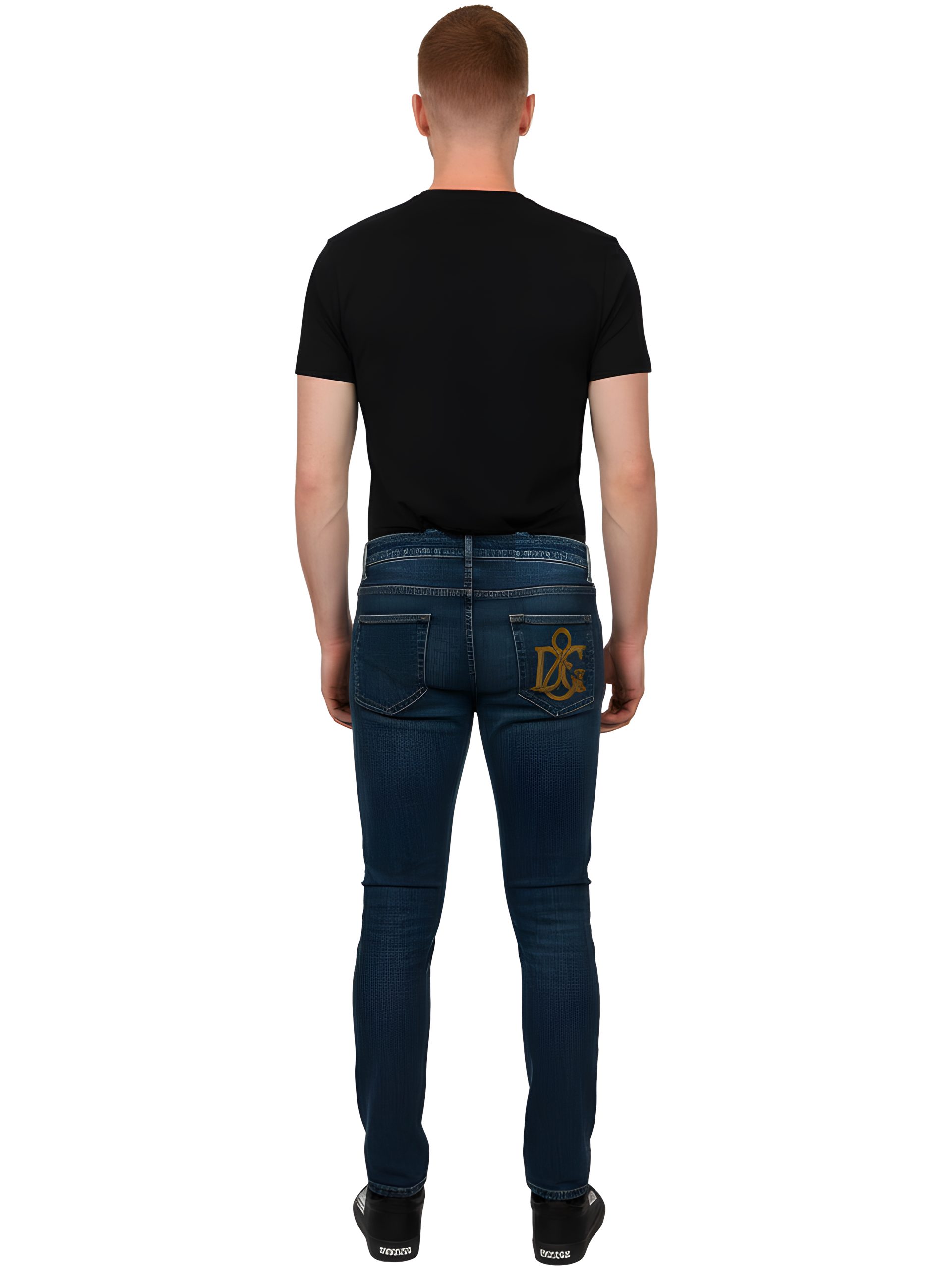 Refined and stylish, these Dolce & Gabbana dark blue skinny jeans feature a clean vintage wash paired with a bold embroidered DG monogram on the back pocket. The smooth fading, sharp silhouette, and signature gold stitching create a modern and elevated denim essential. They feature: