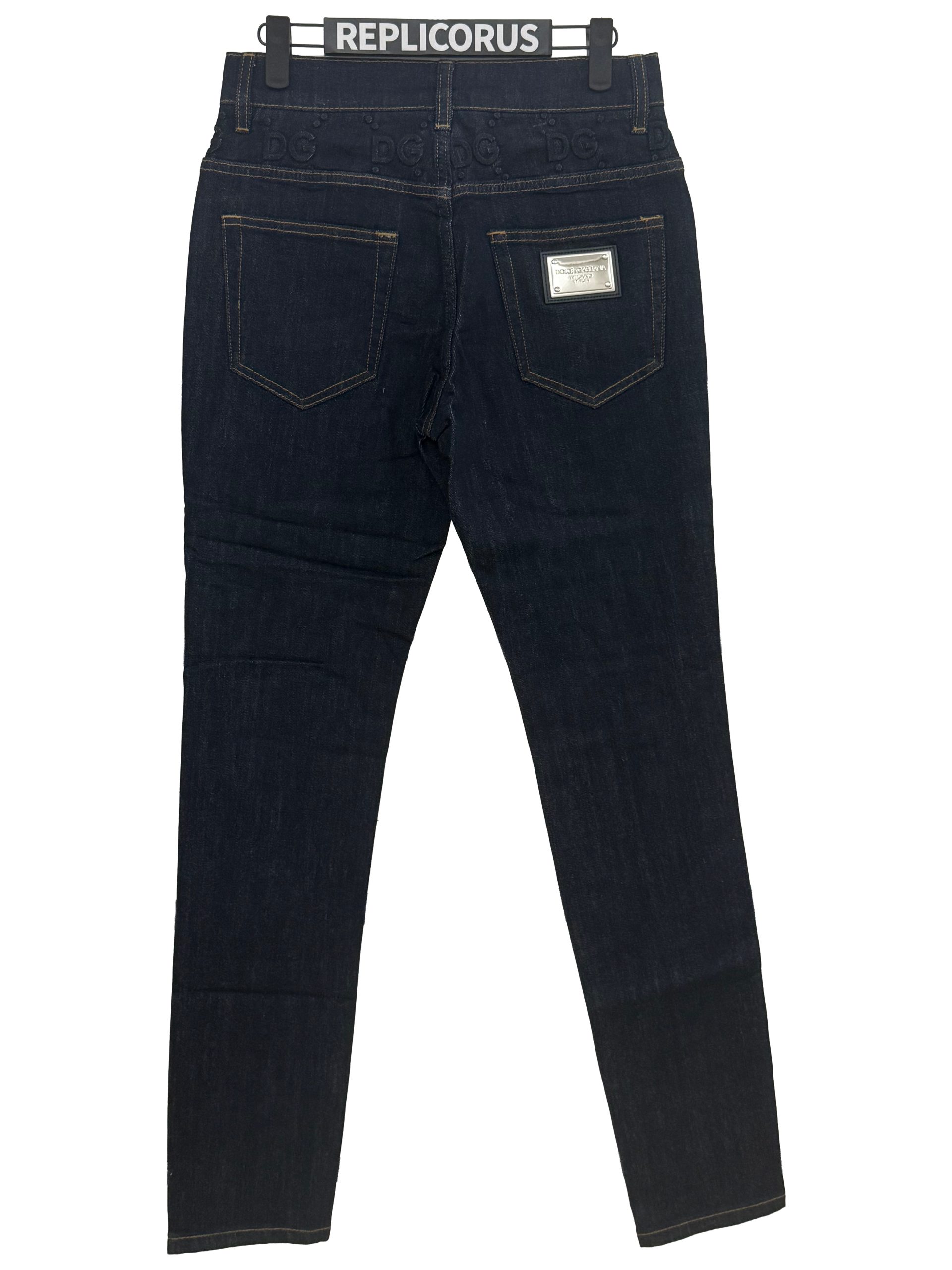 - Branded silver metal Dolce & Gabbana logo plaque positioned on the right back pocket for signature refinement