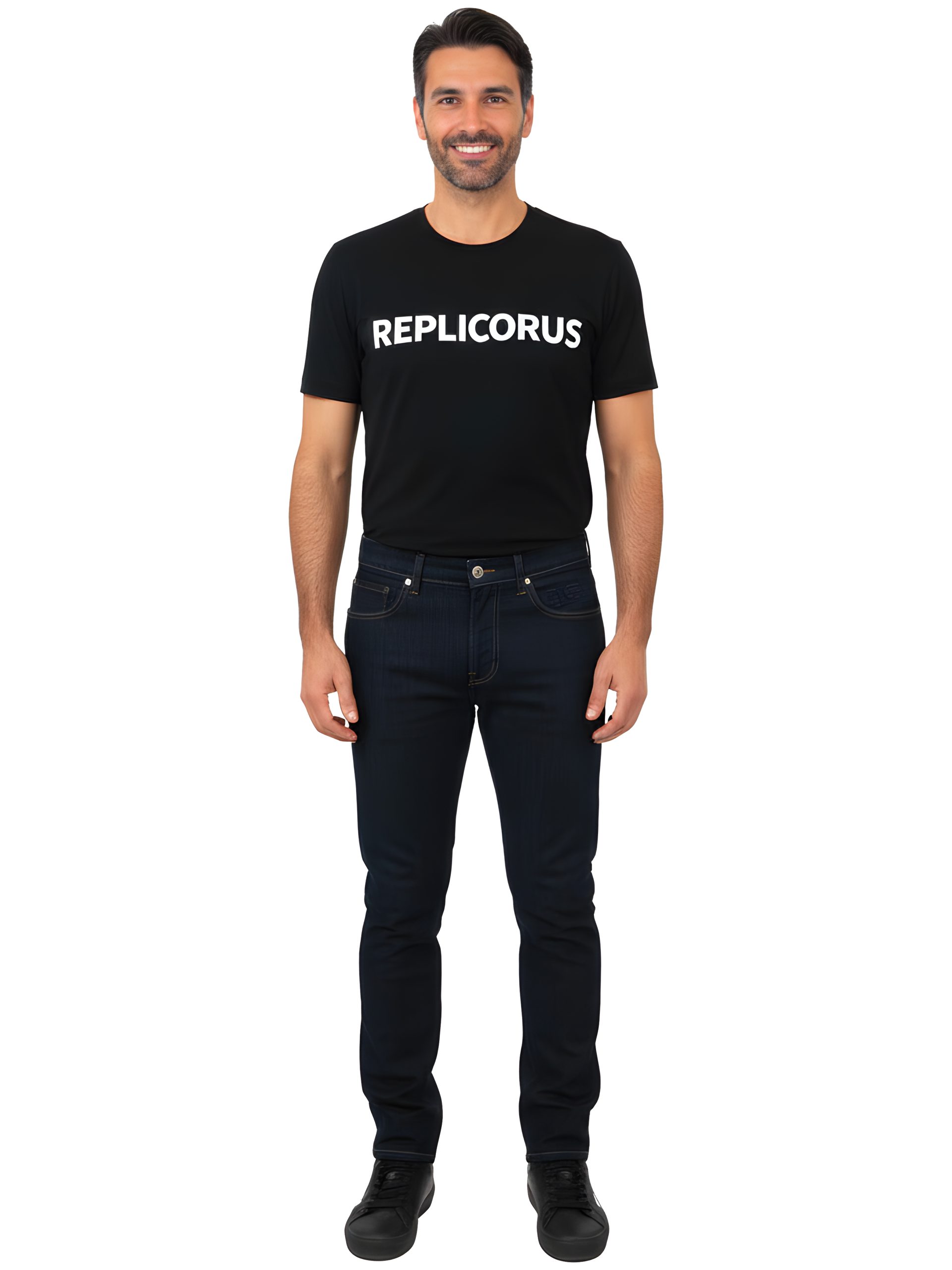 - Deep indigo denim with a smooth, uniform finish for a polished, timeless look