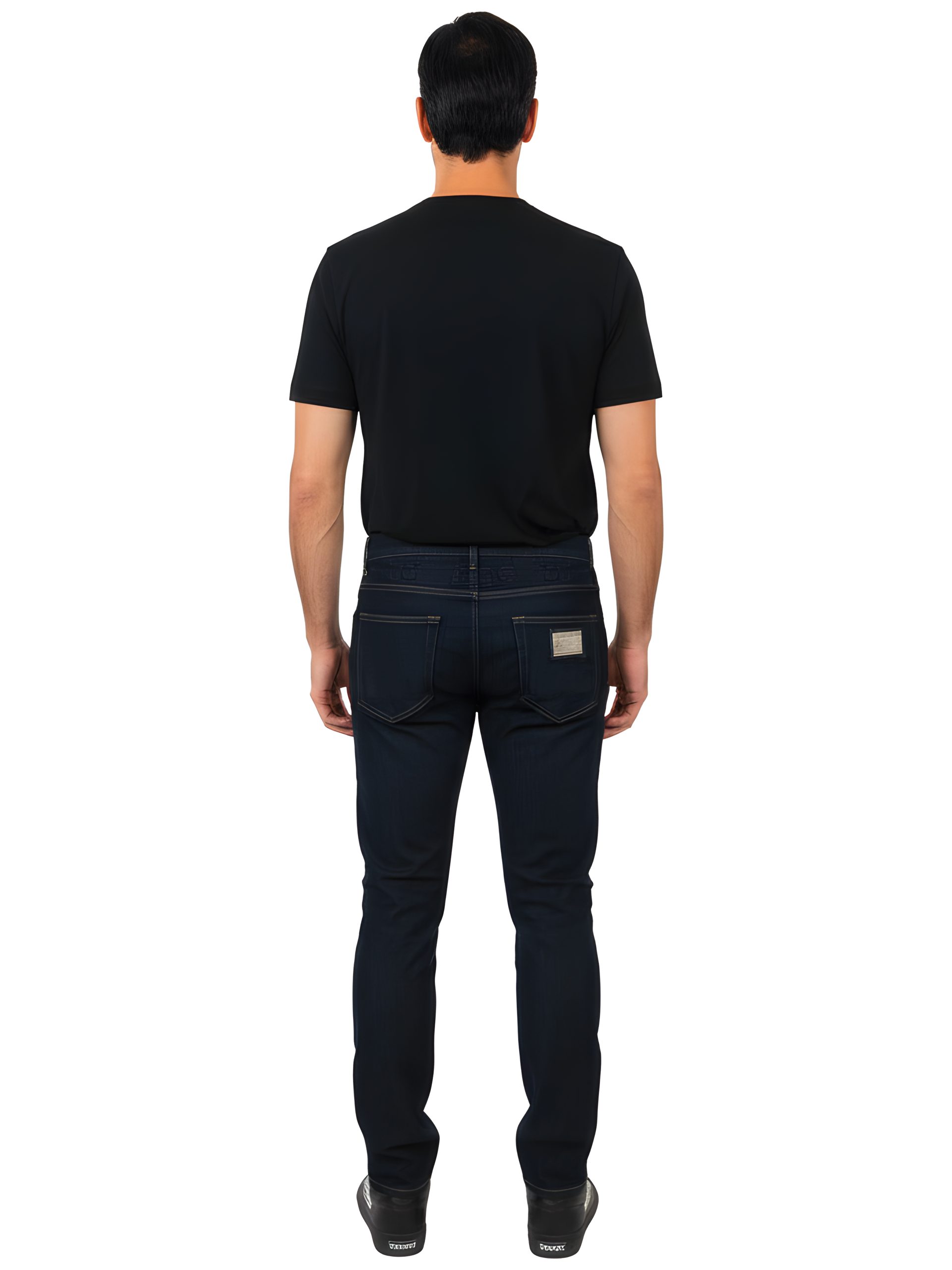 Refined and distinctive, these Dolce & Gabbana dark indigo slim jeans elevate classic denim with subtle embossed DG branding along the pocket and waistband. The deep indigo tone, clean silhouette, and signature metal plaque blend everyday versatility with unmistakable Italian craftsmanship. They feature: