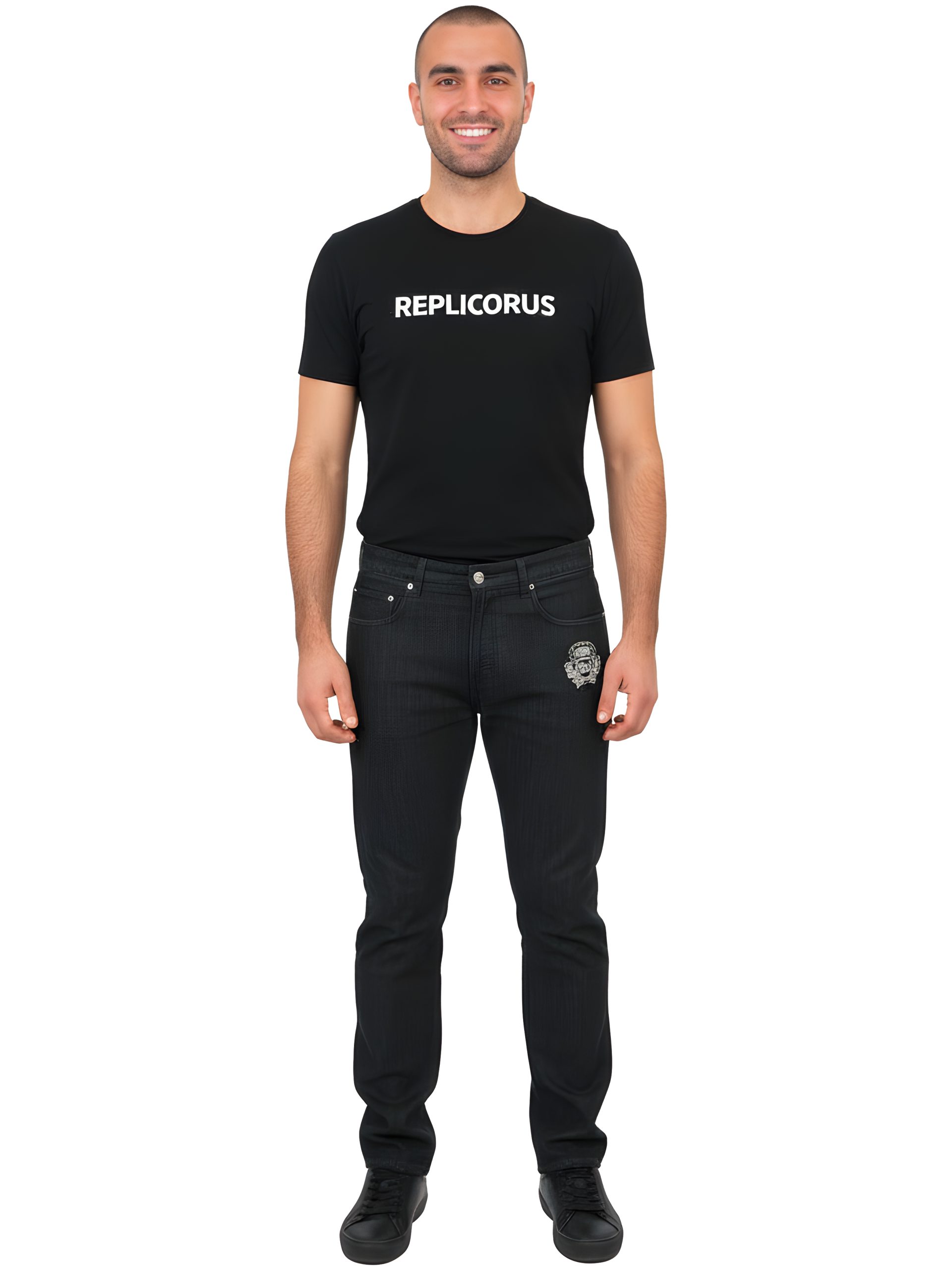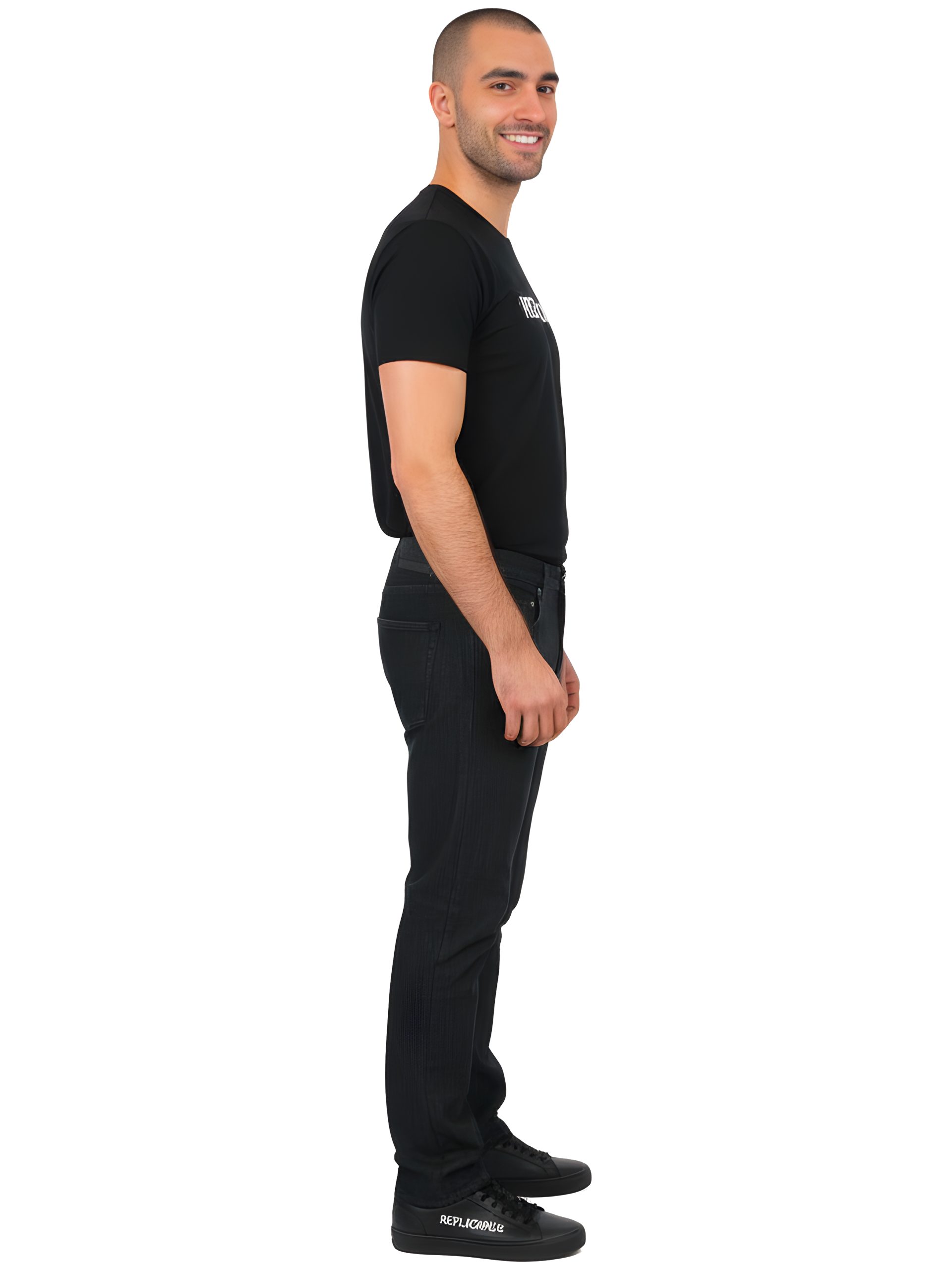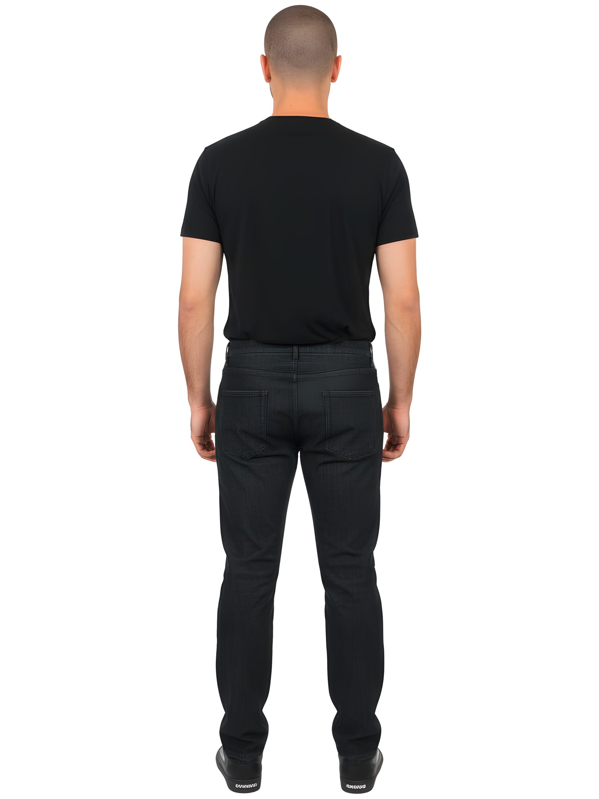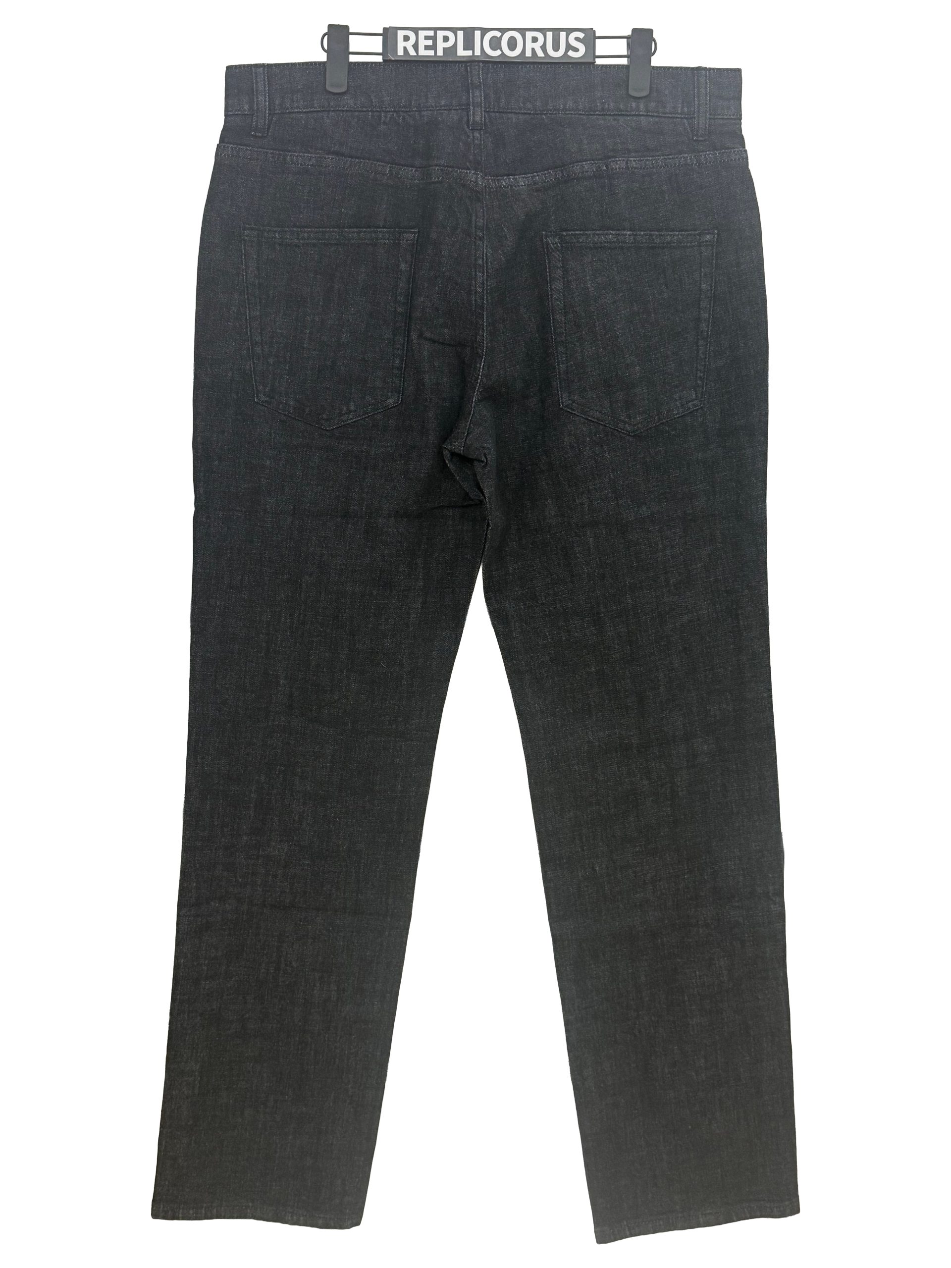 - Black vintage-wash denim with subtle fading for a soft, refined look